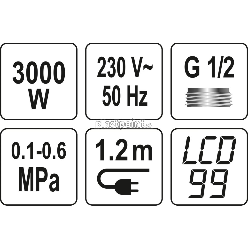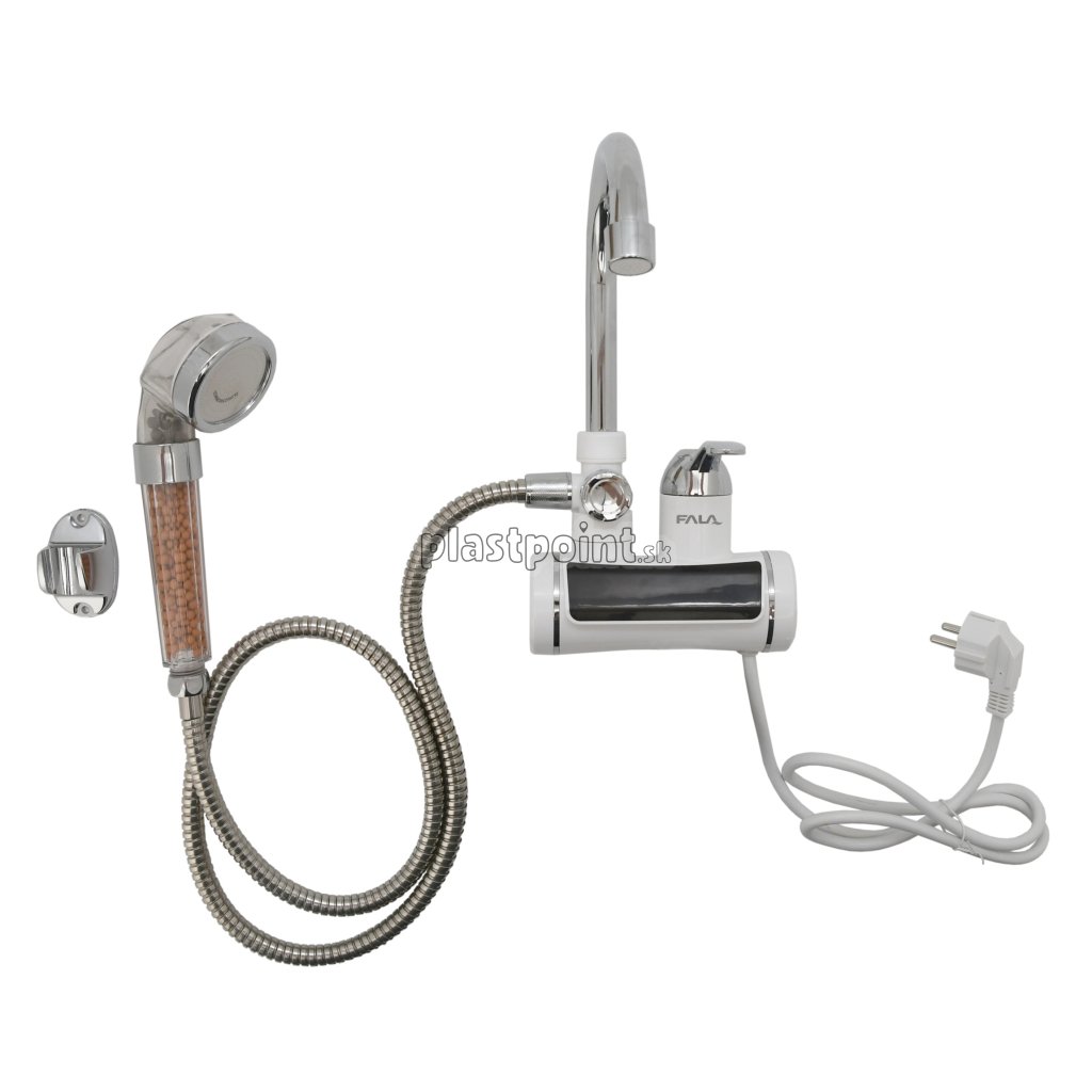 Prietokový ohrievač s výkonom 3000W, umožňuje ohriať vodu na 60 ° C za 5 sekúnd. Ľahko čitateľný LED displej, ktorý umožňuje kontrolovať teplotu vody.