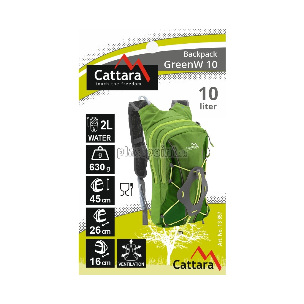 Praktický batoh kompaktných rozmerov s pitným vakom GREEN, ideálny spoločník pre športové využitie. Zhotovenie zo 100% polyesteru s rozmermi 26 x 16 x 45 cm, ponúka priestor až pre 10L predmetov. Na čelnej strane doplnený o šnurovací systém, na stiahnutie batohu a zamedzenie pohybu materiálu vo vnútri, vhodný aj na prichytenie cyklistickej prilby.