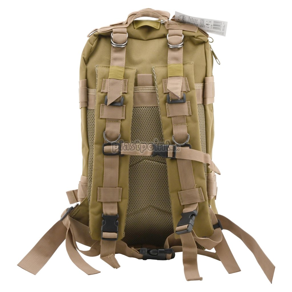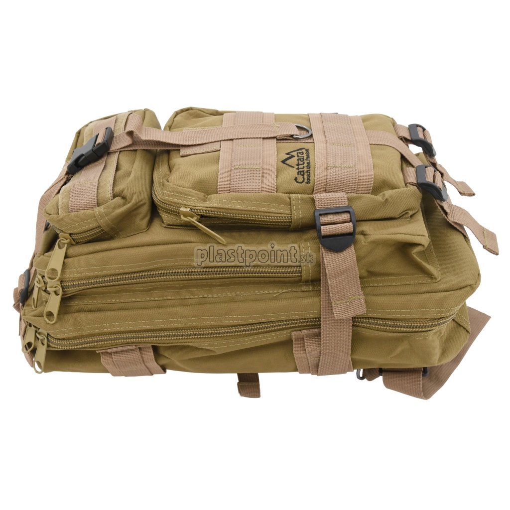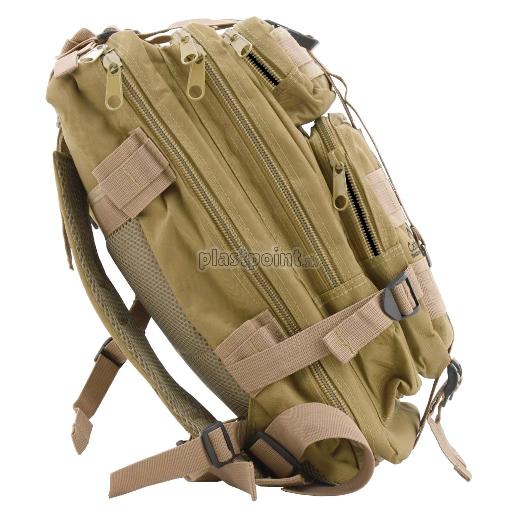 Z čelnej strany a na bokoch je opatrený Molle systémom pre uchytenie ďalšieho vybavenia. Vrecká sú osadené pevným dvojcestným zipsom. Vnútorné vrecká a sieťové vrecko sú doplnené o pútka na bezpečné nosenie drobných predmetov. Jedno z vnútorných vreciek je vybavené klasickým zipsom a zadné vetrané vrecko je vybavené suchým zipsom.