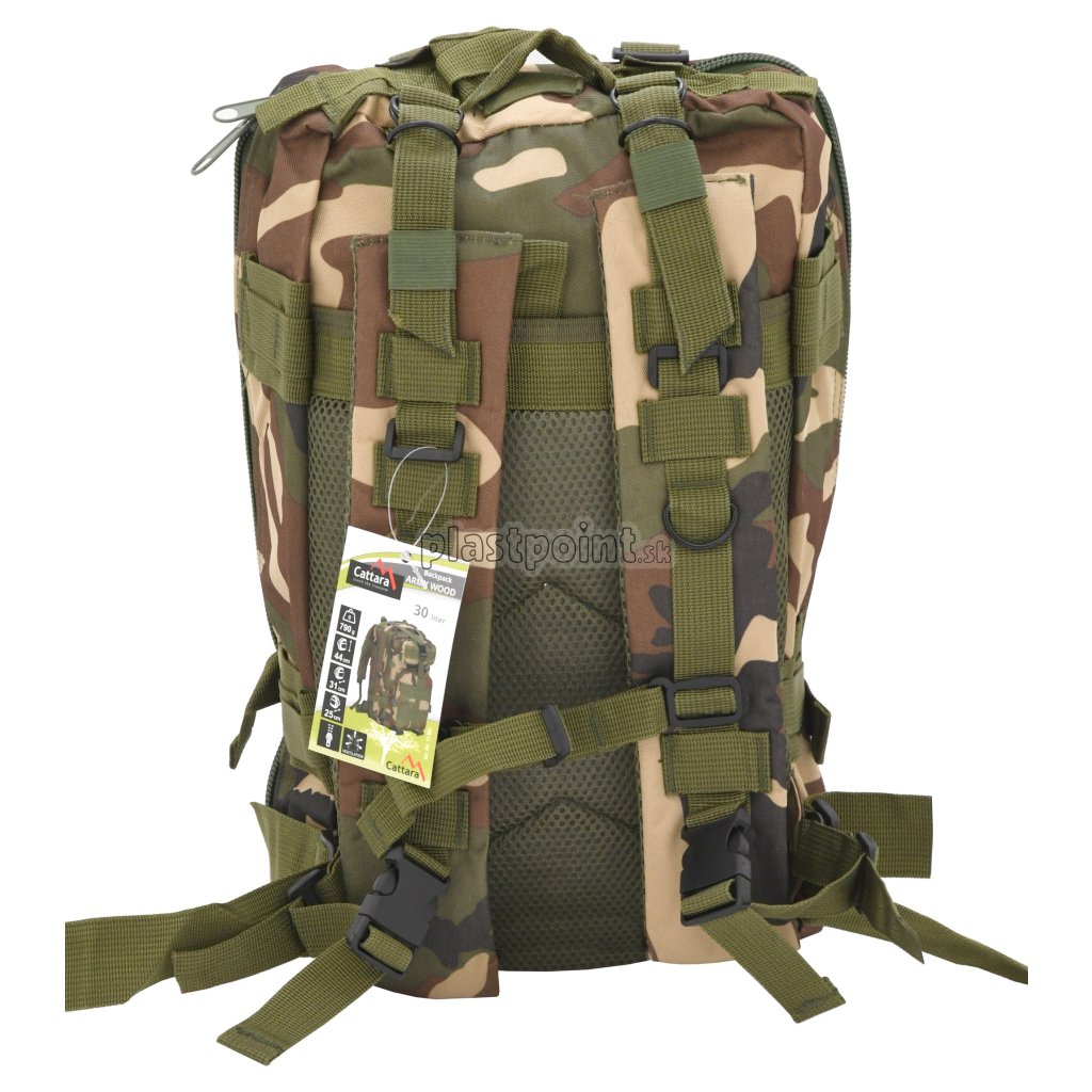Z čelnej strany a na bokoch je opatrený Molle systémom pre uchytenie ďalšieho vybavenia. Vrecká sú osadené pevným dvojcestným zipsom. Vnútorné vrecká a sieťové vrecko sú doplnené o pútka na bezpečné nosenie drobných predmetov. Jedno z vnútorných vreciek je vybavené klasickým zipsom a zadné vetrané vrecko je vybavené suchým zipsom.
