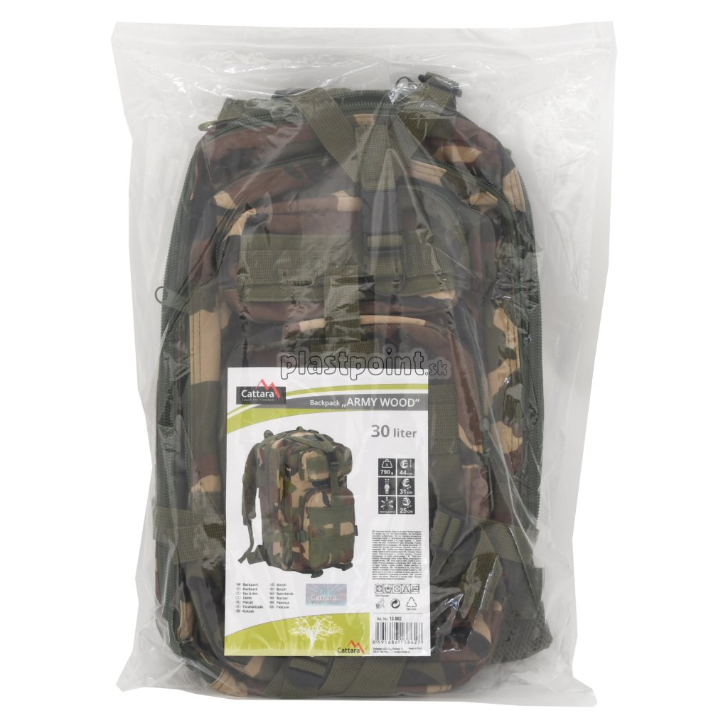 Zhotovenie zo 100% polyesteru s vodeodolnou PVC vrstvou z vnútornej strany. Batoh má rozmery 31 x 44 x 25 cm a ponúka objemný priestor až pre 30L predmetov.