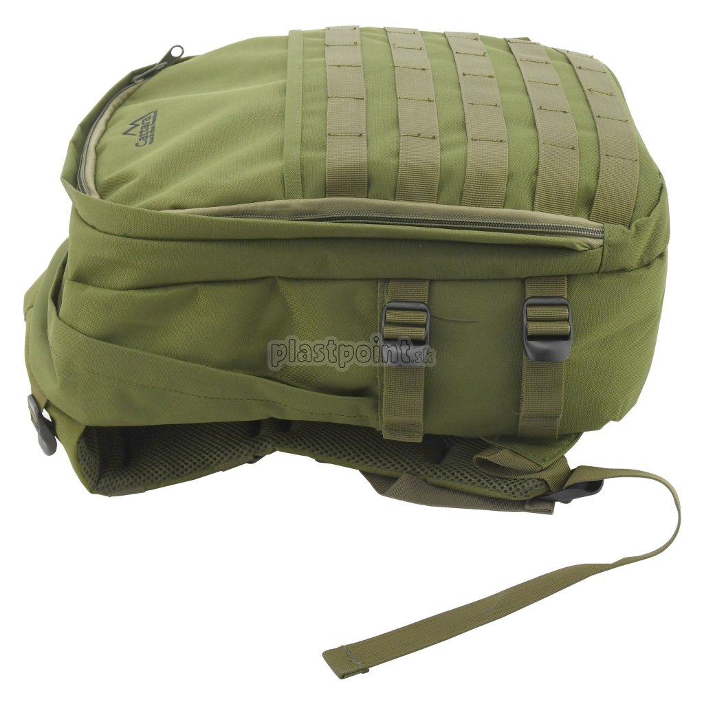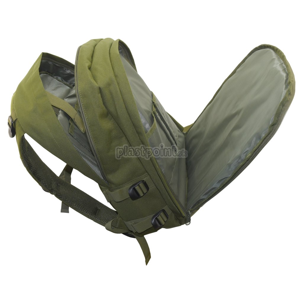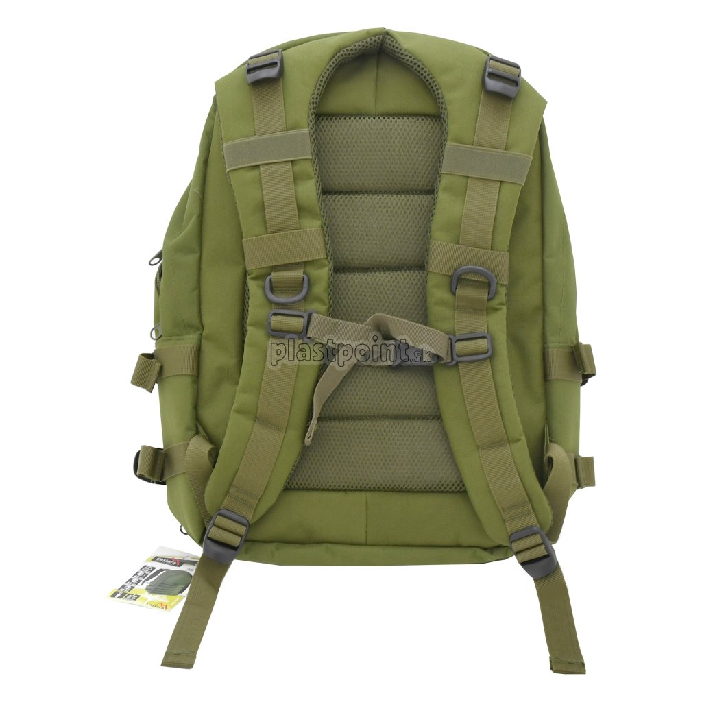 Čelná strana je vybavená Molle systémom pre uchytenie ďalšieho vybavenia. Vrecká sú osadené pevným dvojcestným zipsom. Jedna z vnútorných vreciek je doplnená o istiaci systém pre bezpečné nosenie vybavenia. Batoh má množstvo ďalších vreciek nielen pre drobnosti.
