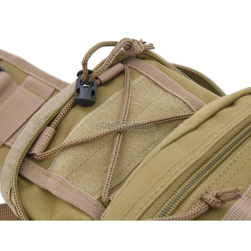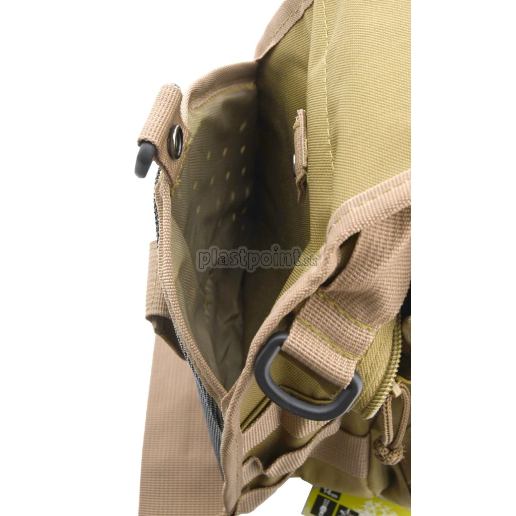Z čelnej strany a na bokoch je vybavená Molle systémom pre uchytenie ďalšieho vybavenia. Vrecká sú osadené pevným zipsom, na hlavnom vrecku zipsom dvojcestným. Vnútorné vrecká sú doplnené o pútka a zapínanie na bezpečné nosenie drobných predmetov.