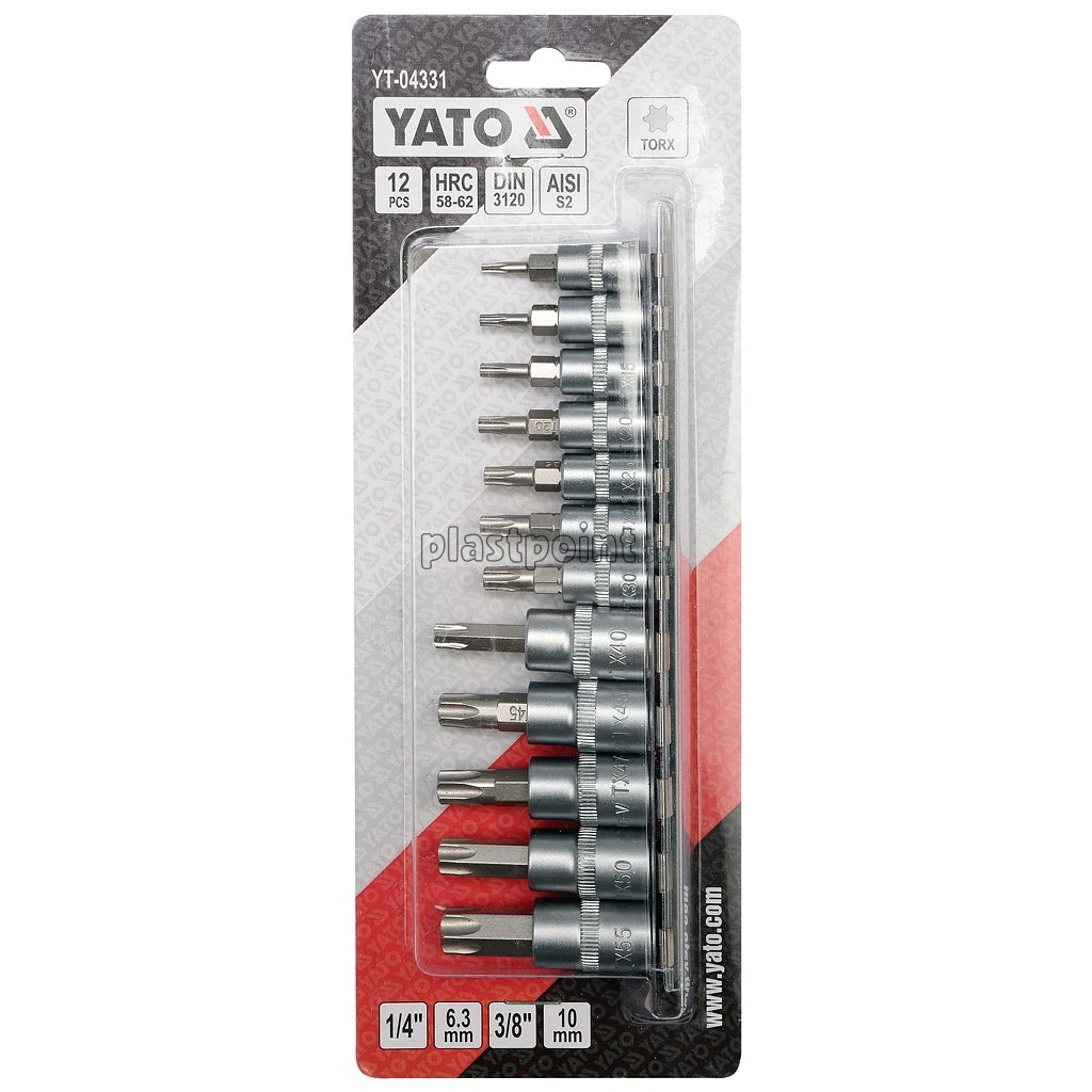 Dĺžky 3/4 a 3/8" račne. V sade je kovový držiak bitov a samotné bity T8-T55. Spĺňa normu DIN 3120 pre vysoko-zaťažovateľné nástavce.