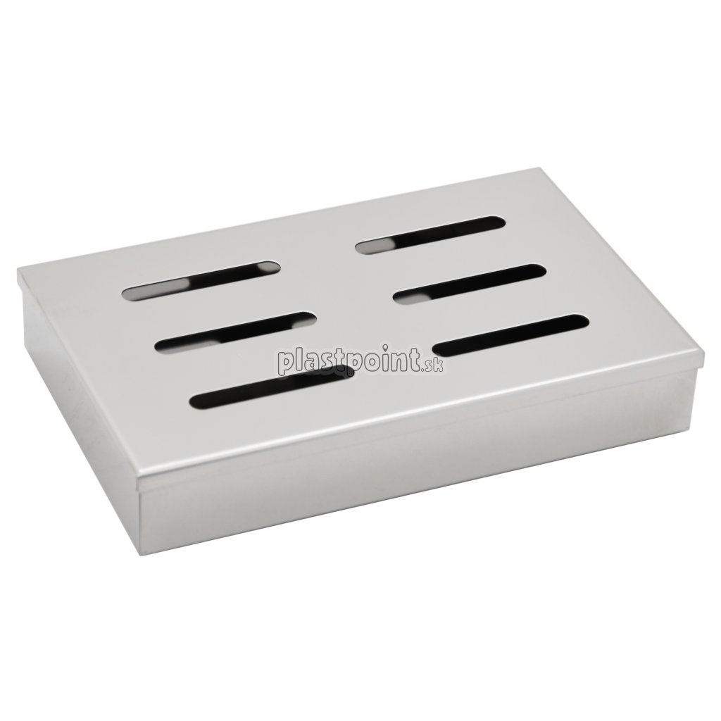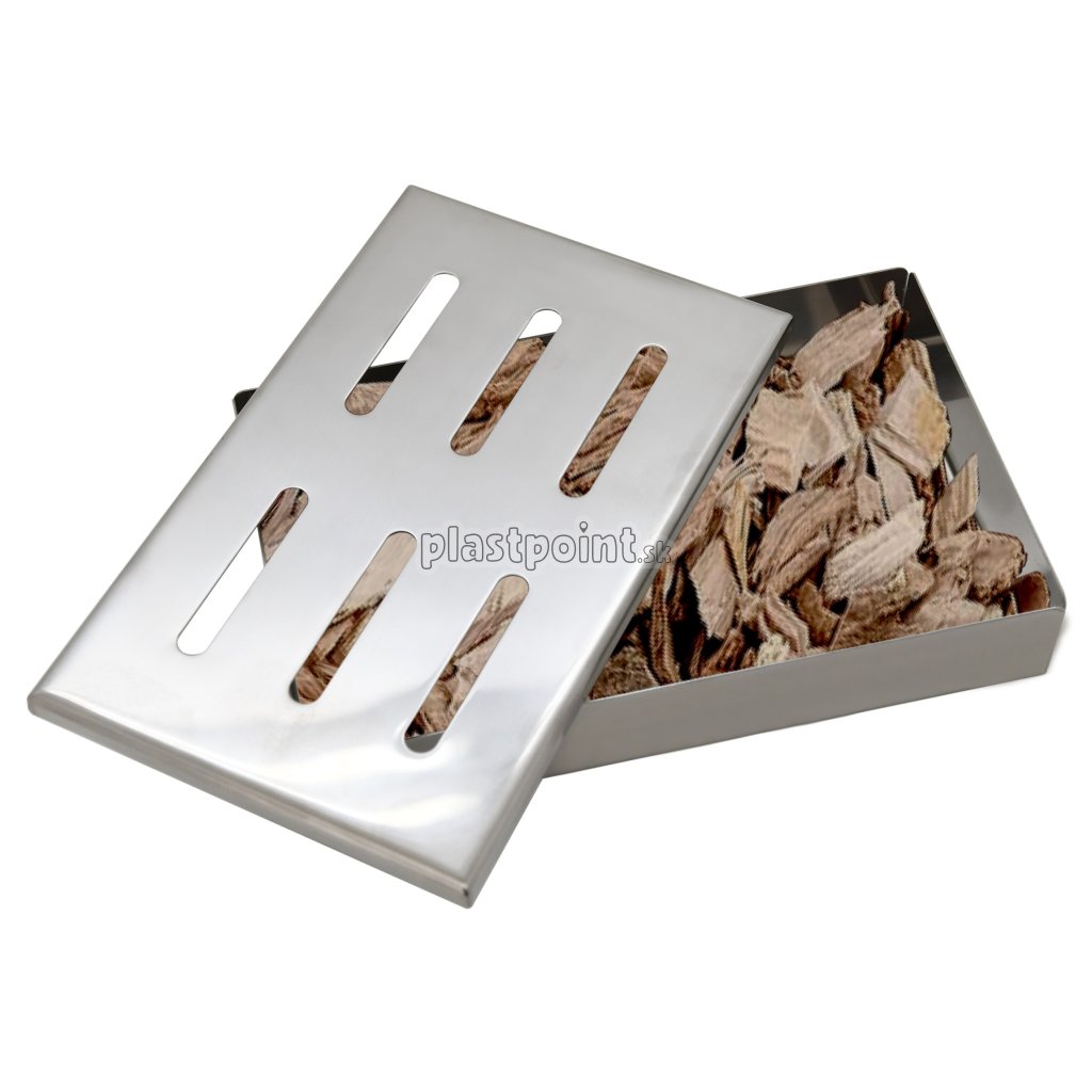Box má rozmery 21 x 13 x 3,5 cm a je zhotovený z nerezovej ocele, s perforáciami pre pozvoľné uvoľňovanie vône z drevenej štiepky.