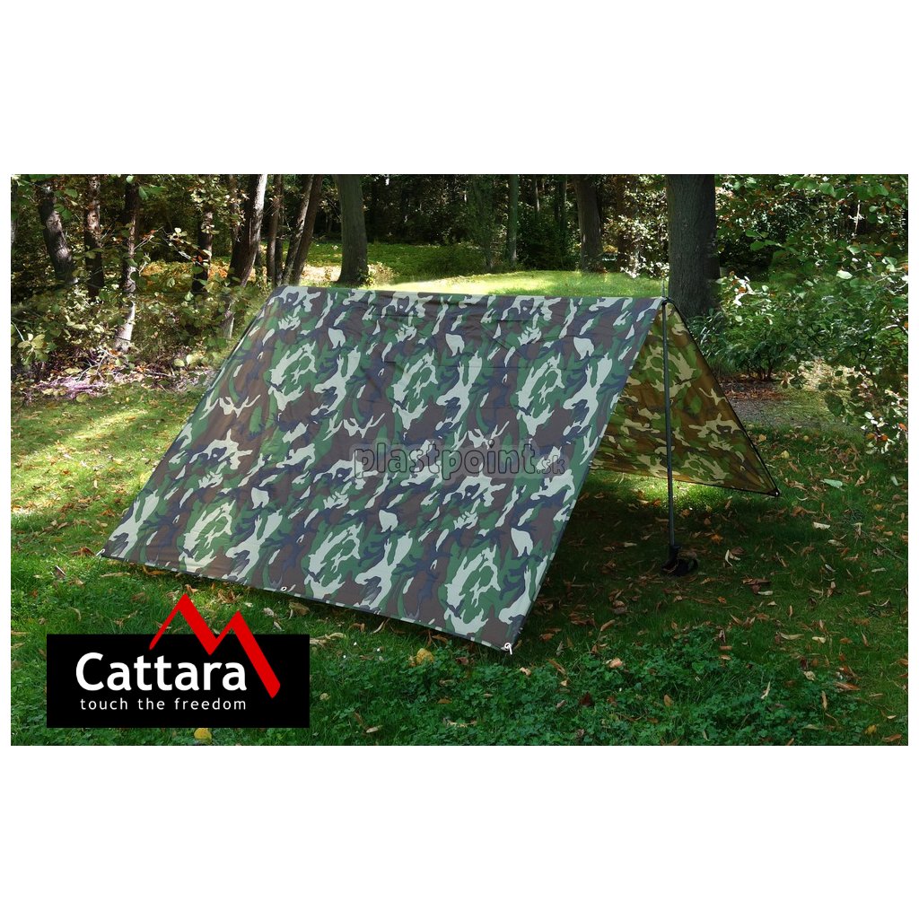 Ľahká celta v lesnej kamufláži s rozmermi 2 x 3 m.