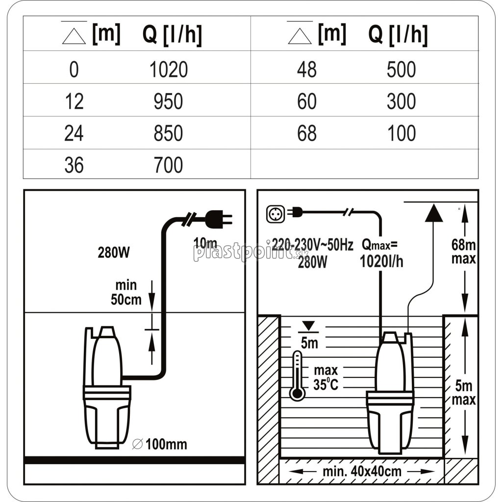 | max. výška výtlaku | 68 m | |||||||
