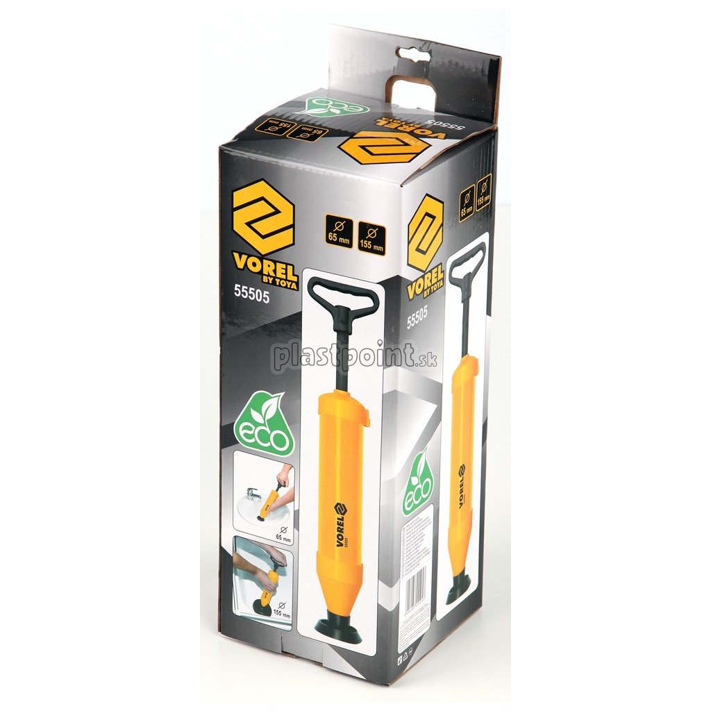 Tlakový čistič odpadov, ktorý funguje tým spôsobom, že ťahaním za piest späť a tam cez tesniacu hubicu pritisnutú na odpadové potrubie sa v tomto vyrába podtlak a pretlak, ktorý rozhýbe upchaté častice v potrubí. Tento postup sa niekoľkokrát zopakuje, kým sa odpad spriechodní. Tento spôsob nevyžaduje žiadne agresívne chemické prípravky a tým je veľmi šetrný k životnému prostrediu. V príslušenstve sú dve tesniace gumové hubice, ktoré obsiahnu všetky sifóny. Veľká guma má priemer 135 mm, malá 63 mm.