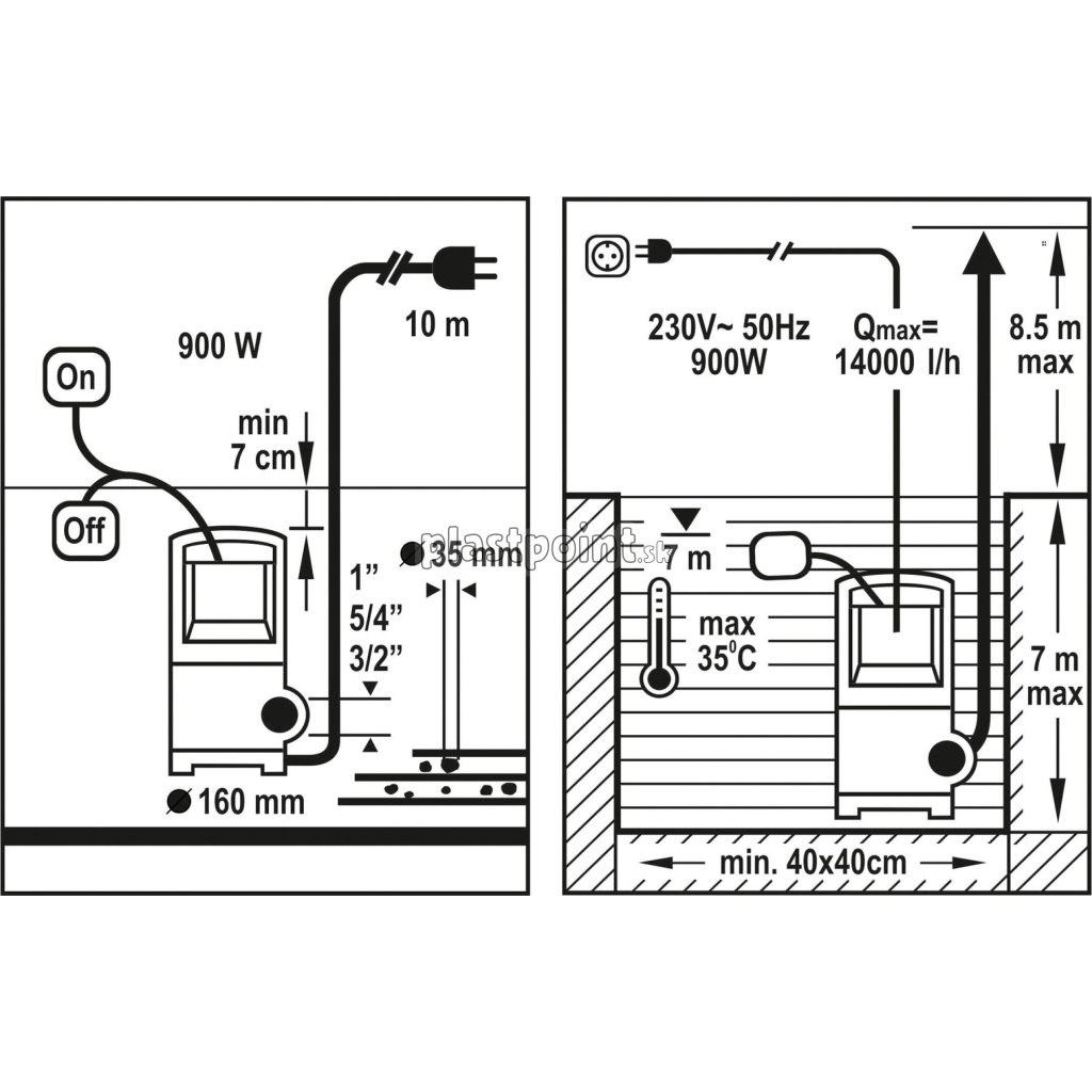 Ponorné čerpadlo pro čistou i kalnou vodu o výkonu 900W.