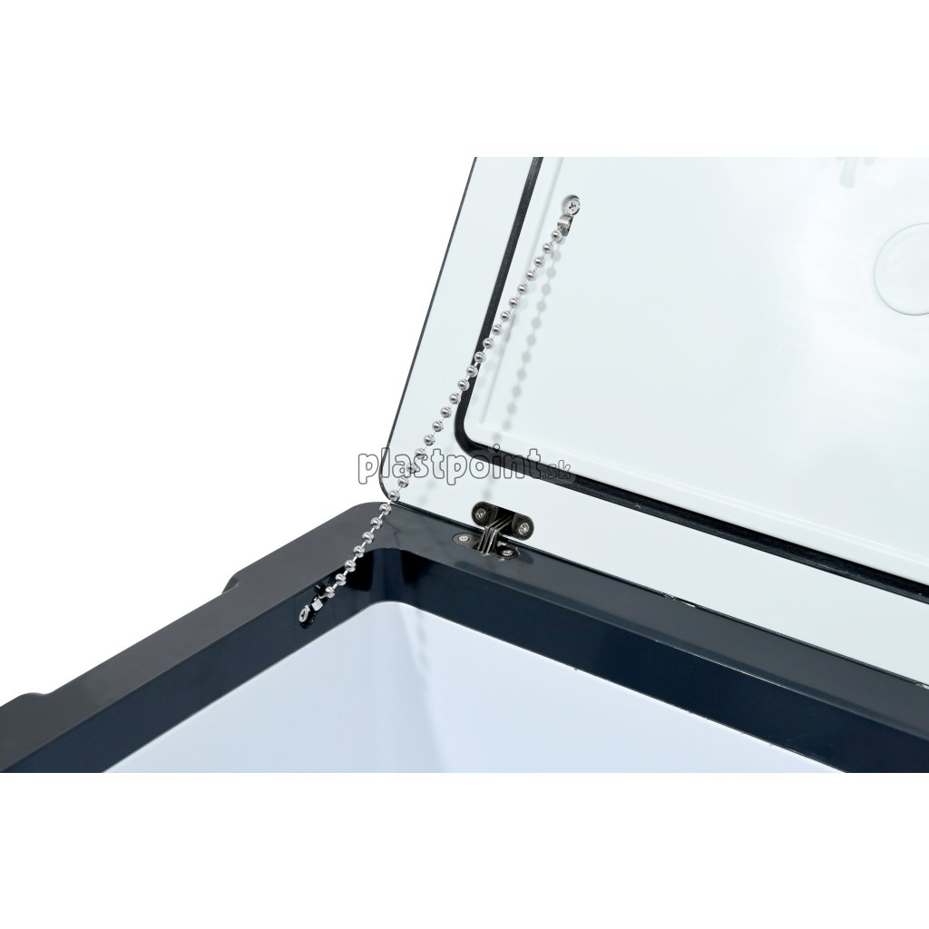Dvierka chladiaceho boxu sú variabilné, umožňujú ako pozdĺžne otváranie, tak aj ľahkú úpravu na priečne. Vďaka postranným madlám z odolného plastu je tento box ľahko prenosný.