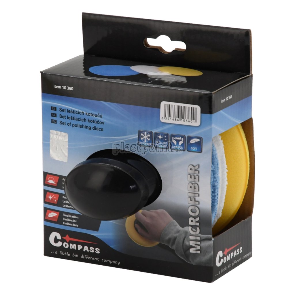 Sada troch kotúčov s priemerom 12 cmp pre dokonalé ručné vyleštenie karosérie vozidla. Ergonomická rukoväť je vyrobená tak, aby sa dala použiť na každý kotúč.