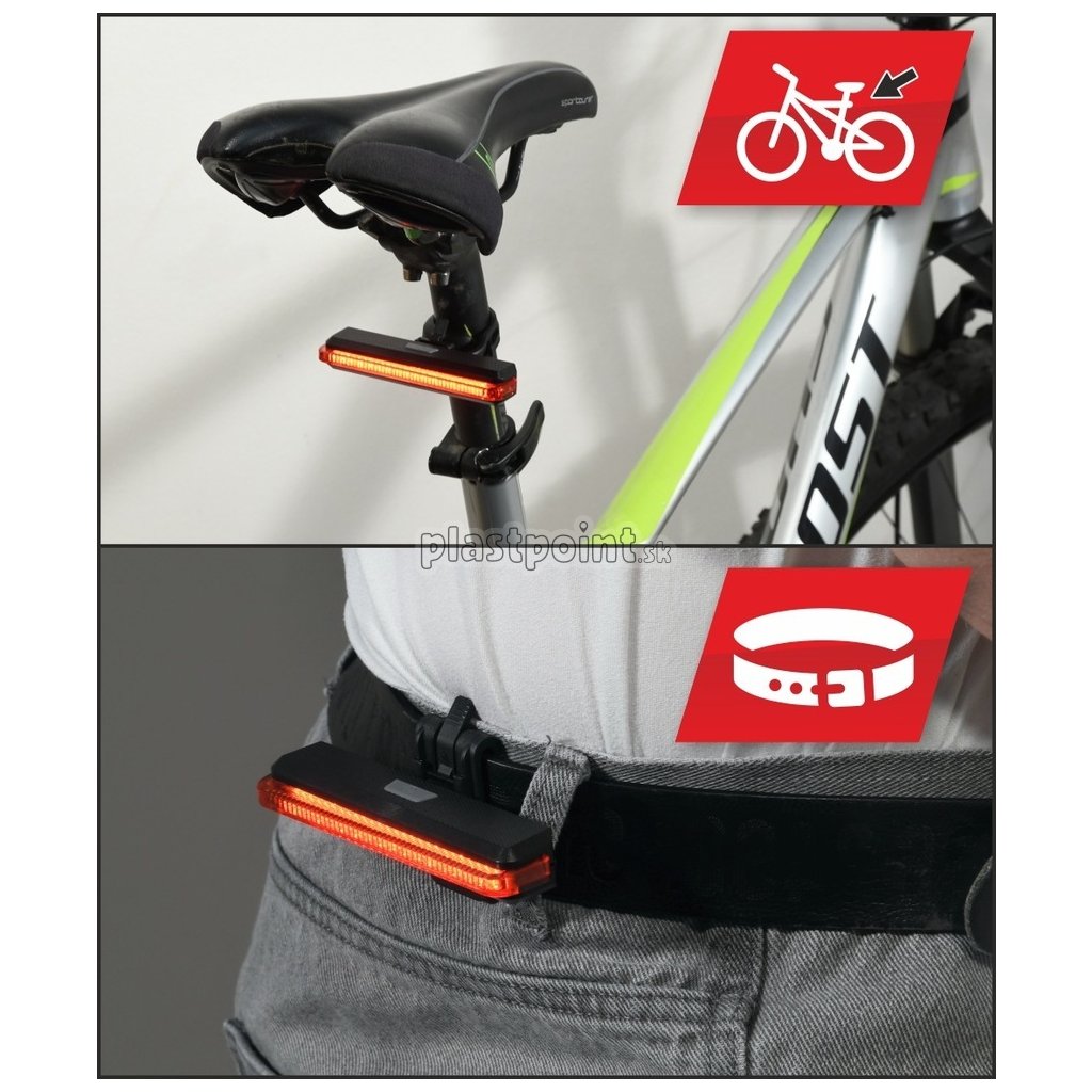 Zadné LED svietidlo na bicykel s jednoduchým systémom upevnenia.