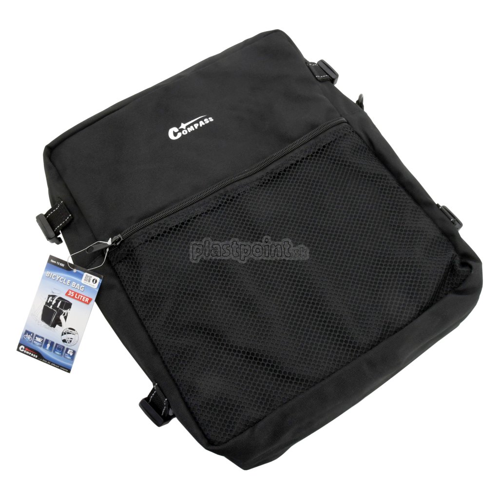Priestranná cyklotaška s odopínateľnou vrchnou brašňou, pre nosič bicykla.
