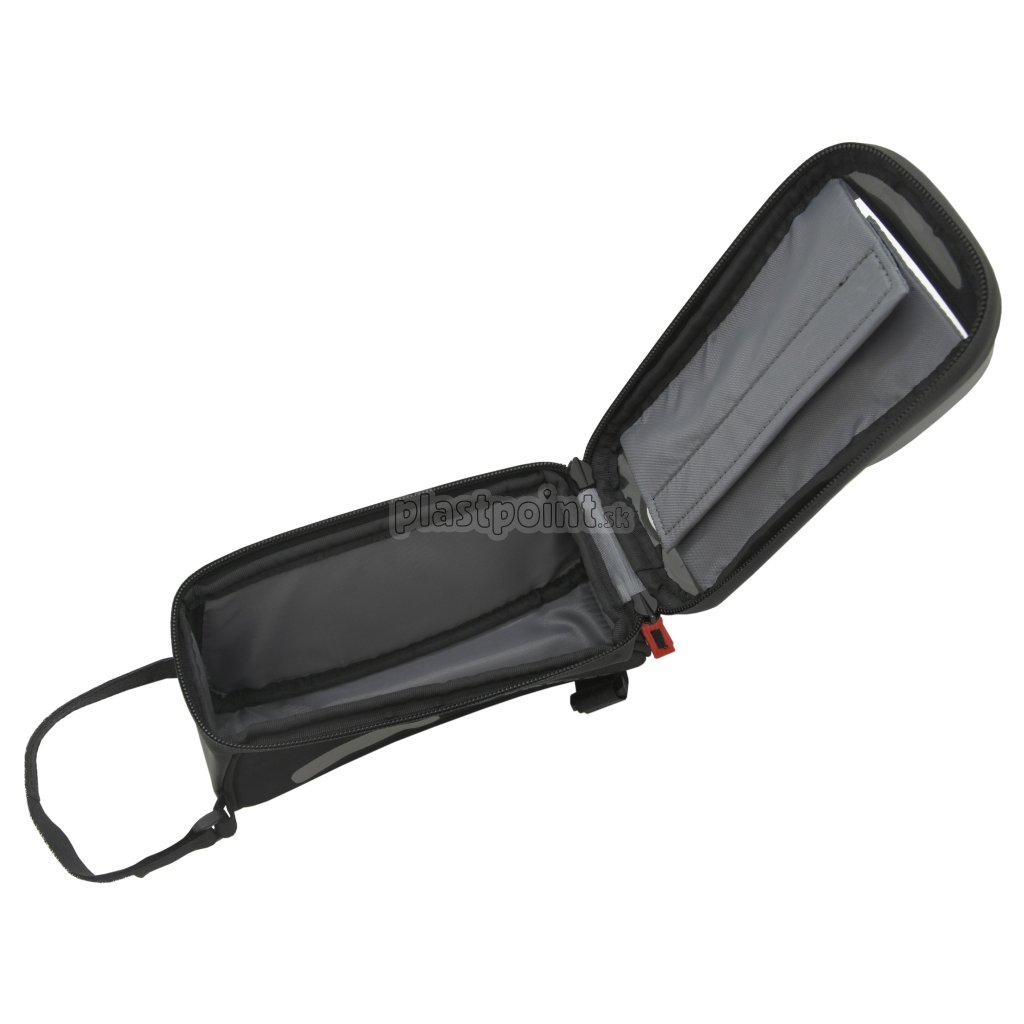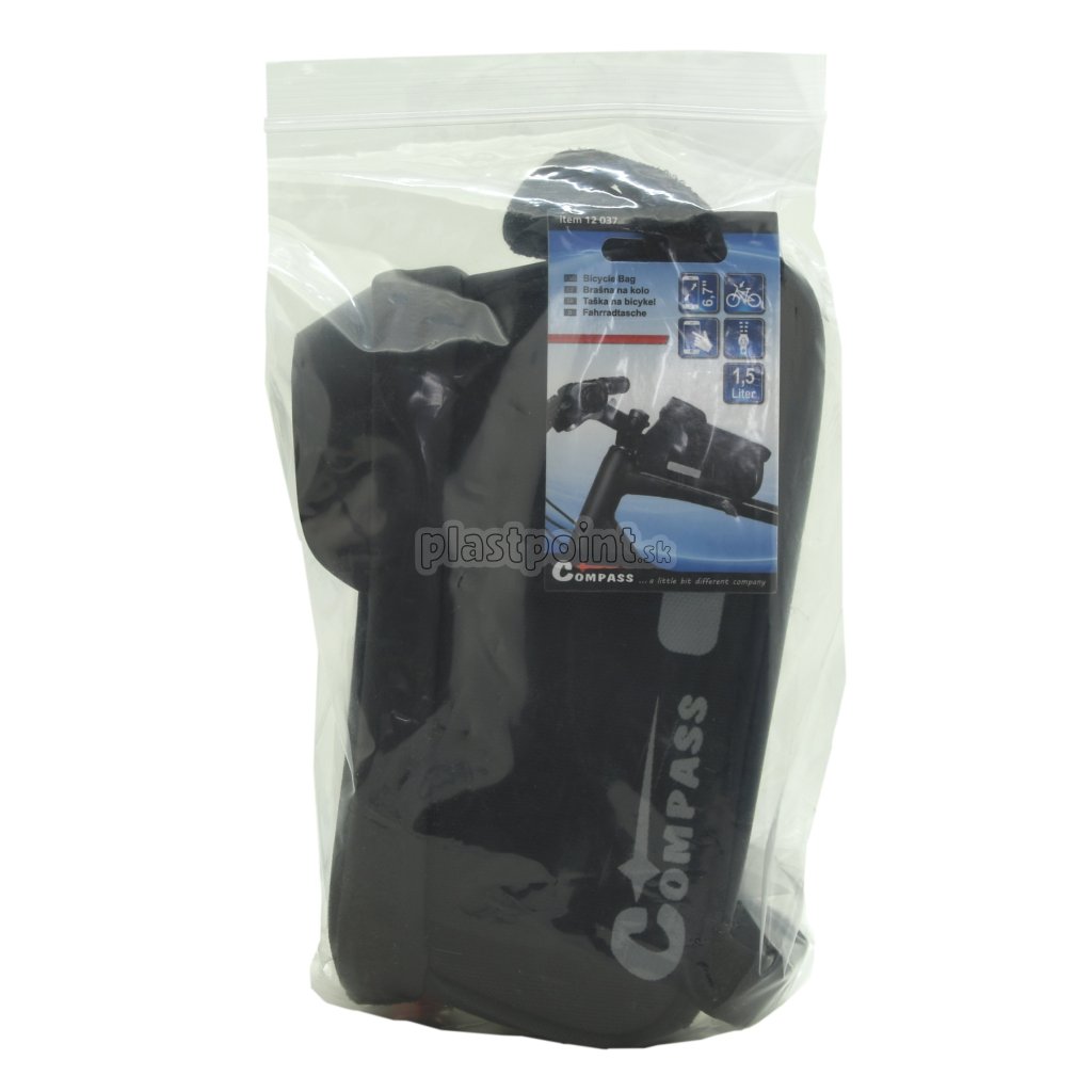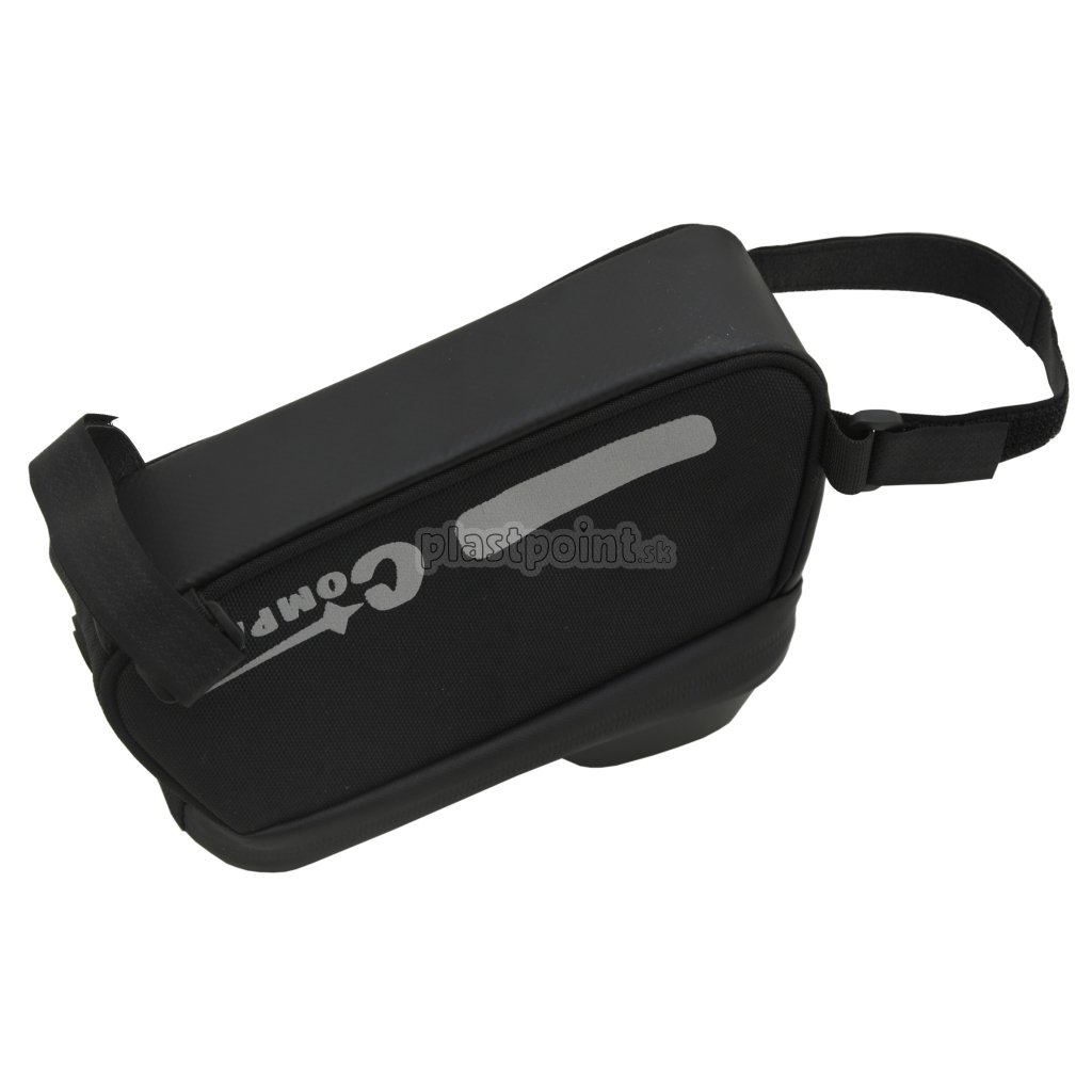 Cyklobrašňa na upevnenie na hornú časť rámu pred riadidlami, s ľahkým uchytením pomocou 2x pásikov so suchým zipsom s prackami.