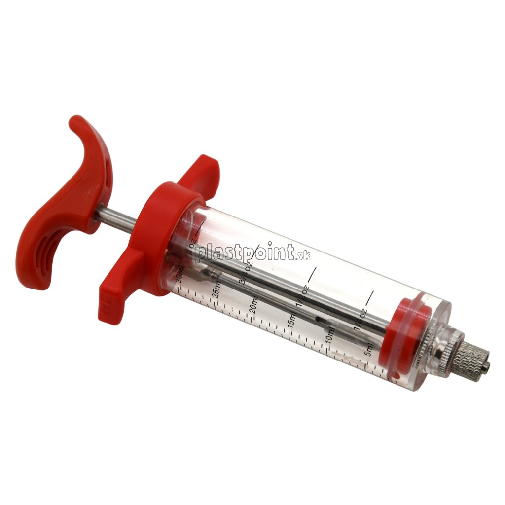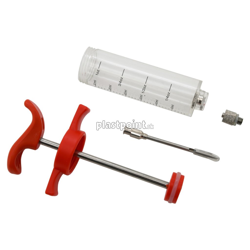 Injekcia s kapacitou 30 ml, s rozmermi 7 x 3,5 x 22 cm. Konštrukcia je plne rozložiteľná, takže je veľmi jednoduché umývanie po použití.