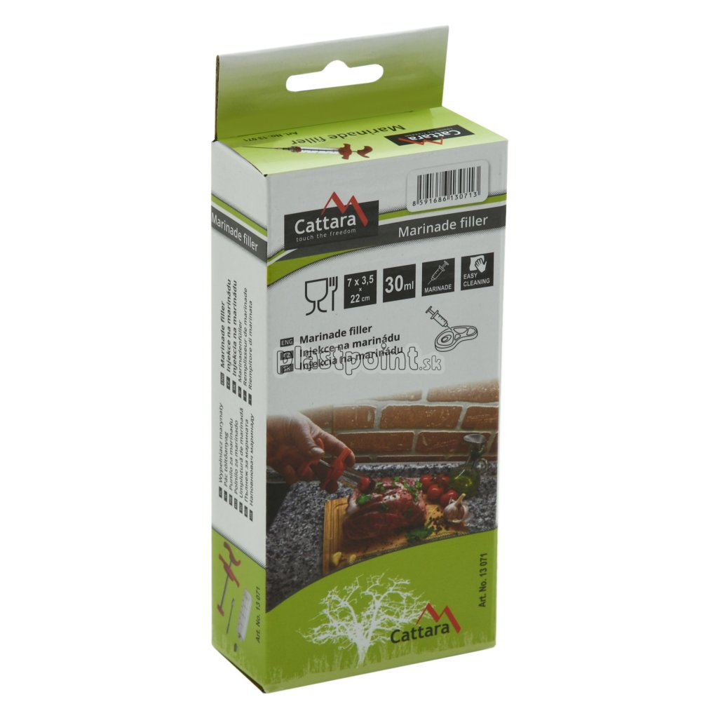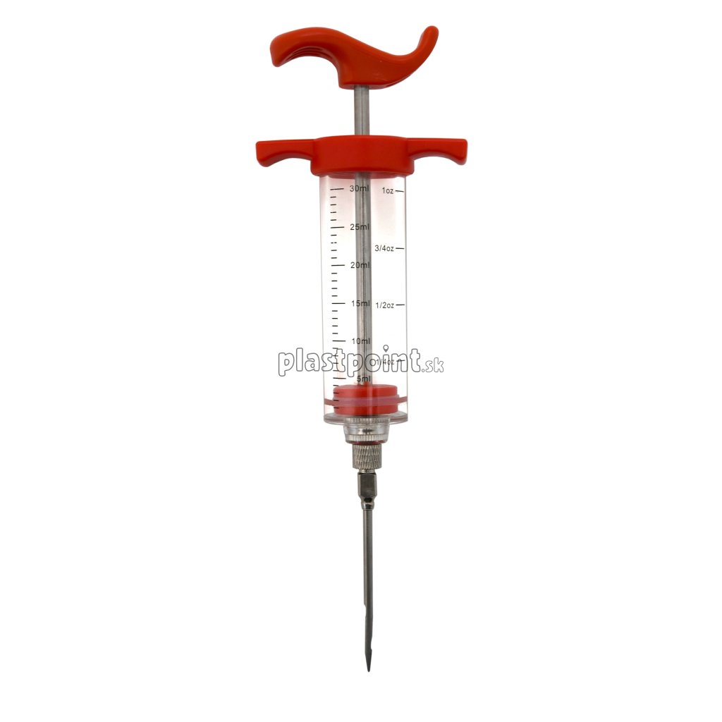 Injekcia veľmi uľahčí plnenie más marinádou a tiež umožní dochutenie miest, kam sa za iných podmienok nedostane chuť korenia a pod. Vďaka tomuto spôsobu aplikácie marinády, významne skrátite čas na odležanie pripravovaných pokrmov, než pri bežnom spôsobe marinovania. 3,5 x 22 cm