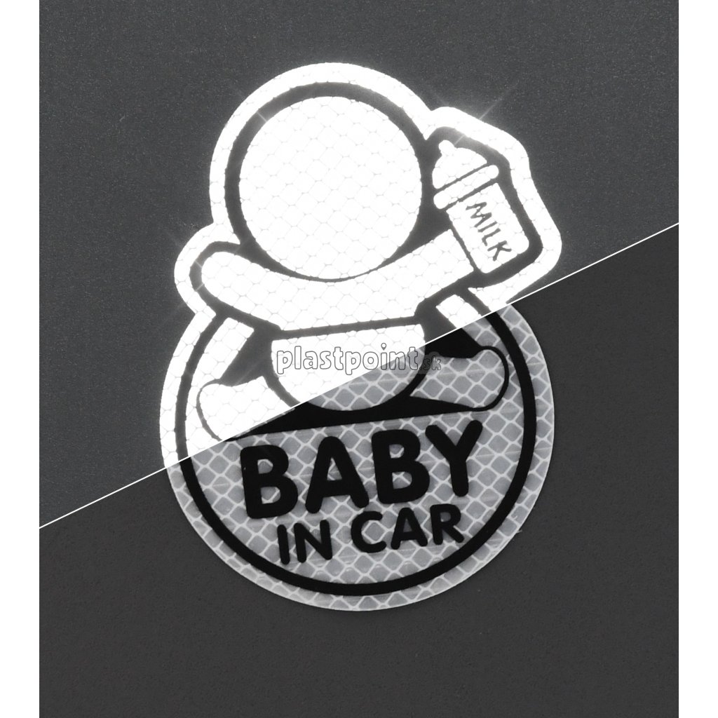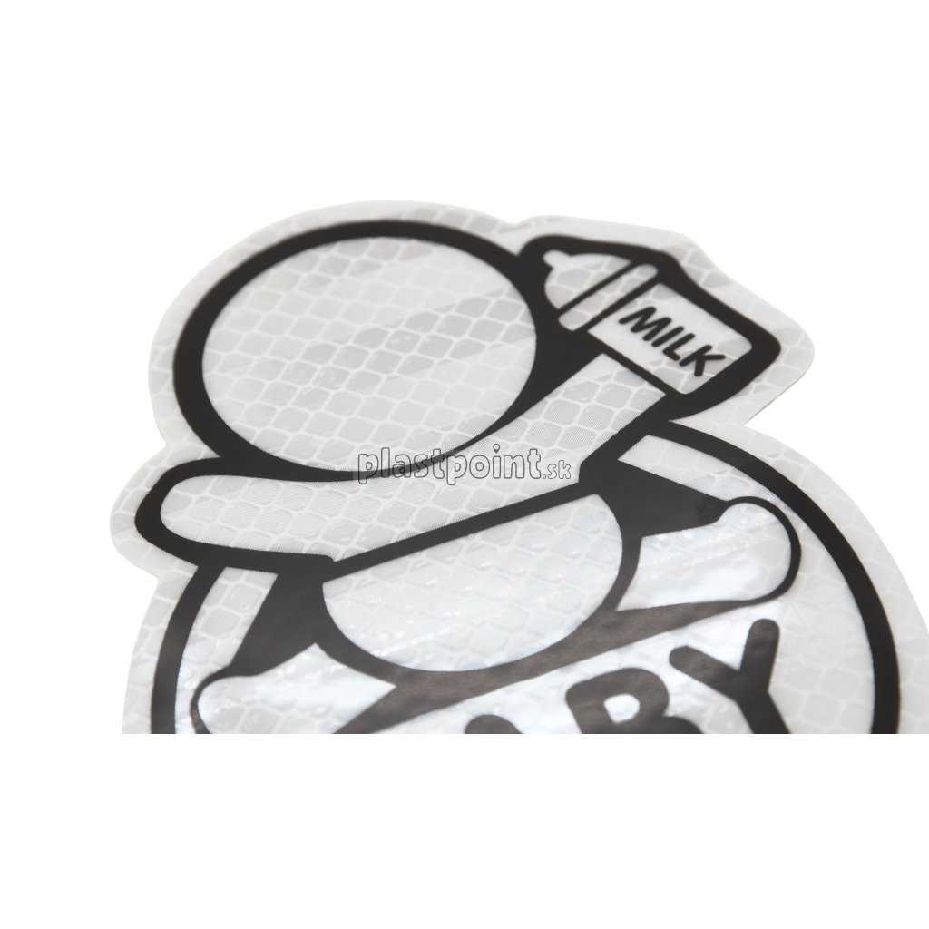 Samolepiaci dekór s reflexnými vlastnosťami upozorňujúci na dieťa vo vozidle.