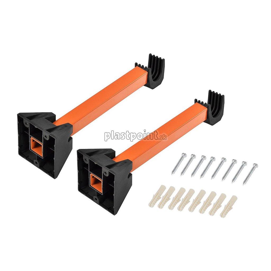 Držiak s kovovou konštrukciou je tvorený dvoma sklápacími ramenami, s plastovým zakončením tvarovaným pre bezpečné uchytenie rámu bicykla.