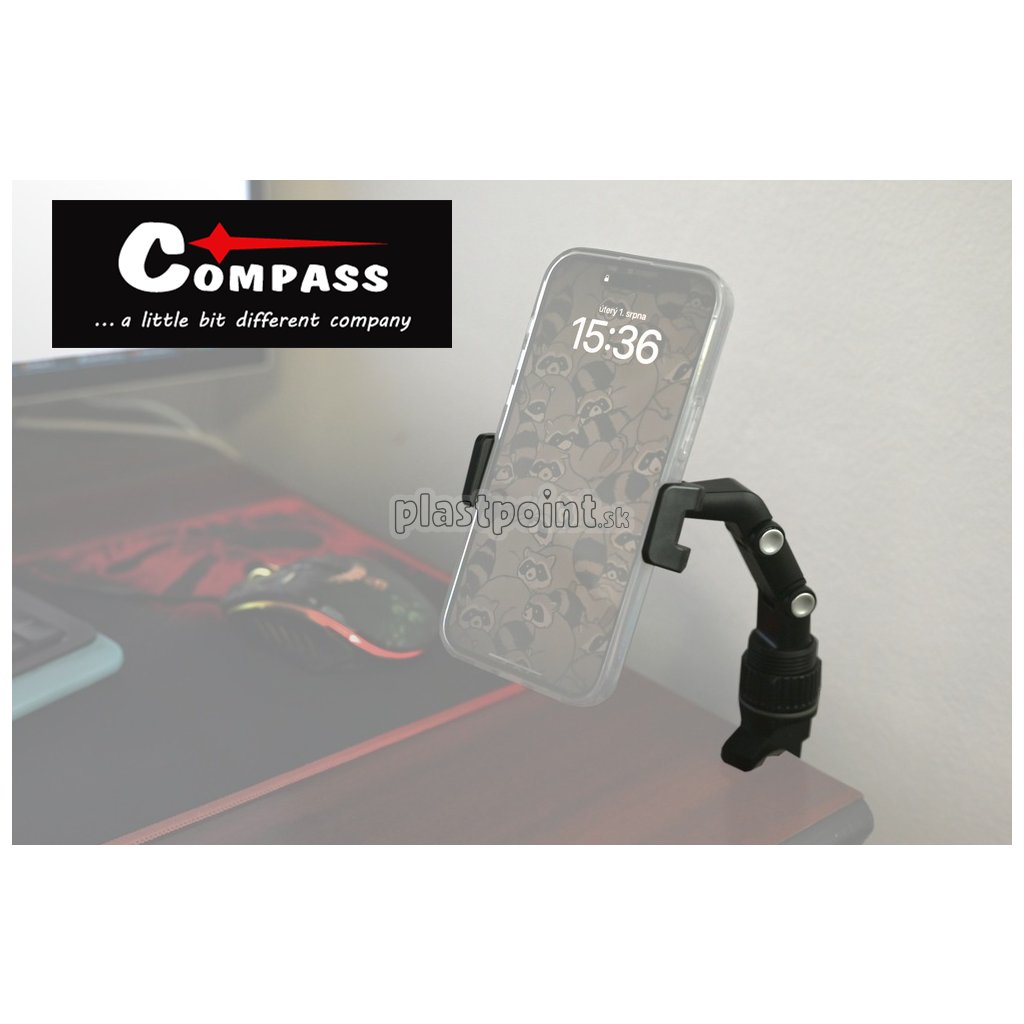 Praktický držiak telefónu s nastaviteľným ramenom a pogumovanými čeľusťami na upevnenie.