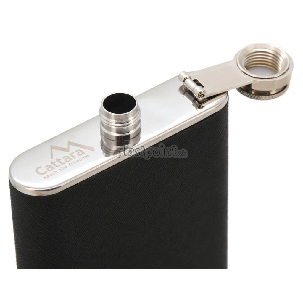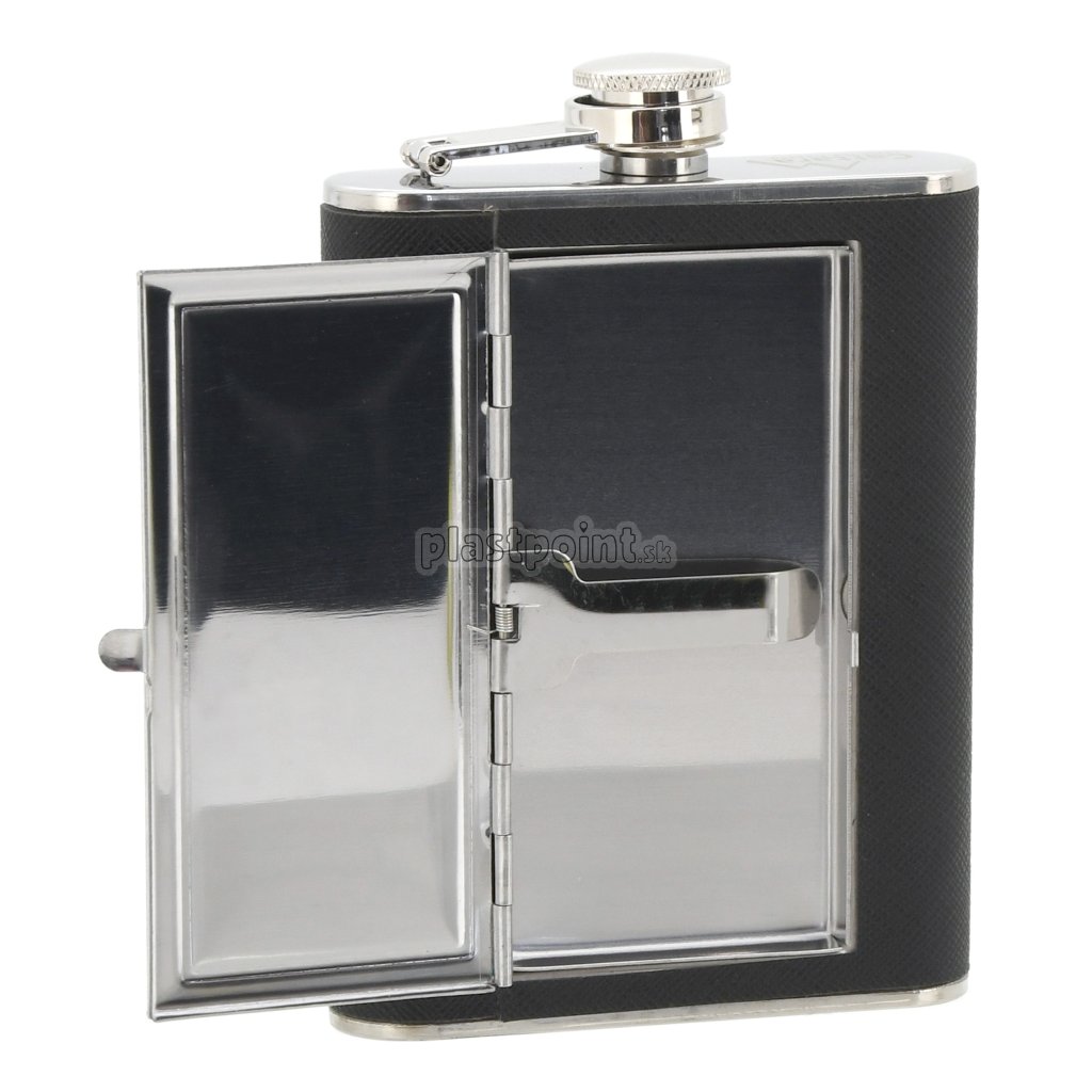 Placatka z nerezovej ocele s poťahom, s objemom 175 ml a puzdrom na cigarky.