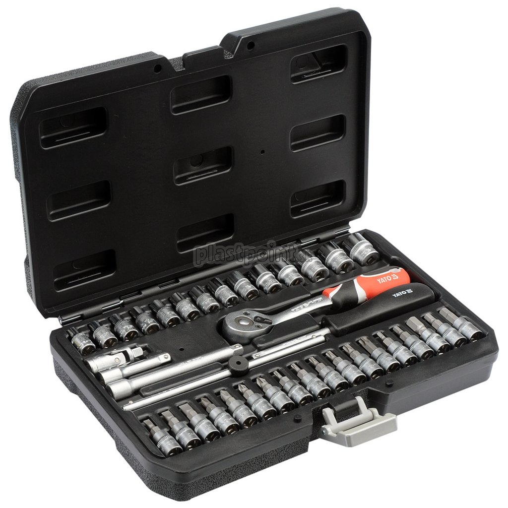 Gola sada 1/4 'XS obsahuje 38ks: nástavcov, predlžovacích nástavcov, račňu s plastovou rukoväťou a ďalšie príslušenstvo. Vyrobené z kvalitnej ocele CrV50BV30, CrV40, CrV6150, CrMo440 a S2 s funkciou AS-DRIVE. Račňa má jemný 72 zubý chod.