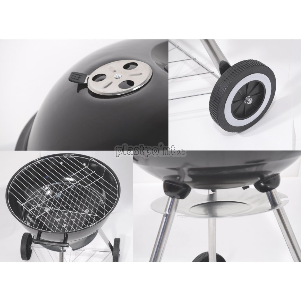 Gril je vybavený regulovateľnou ventiláciou a miskou na popol, či odkvapkávajúci olej.