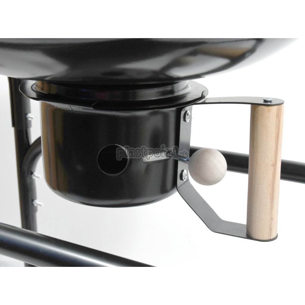 Gril je vybavený regulovateľnou ventiláciou a vysúvacím popolníkom. Veko je úplne odnímateľné, z vnútornej strany vybavené hákom na zavesenie na bok grilu.
