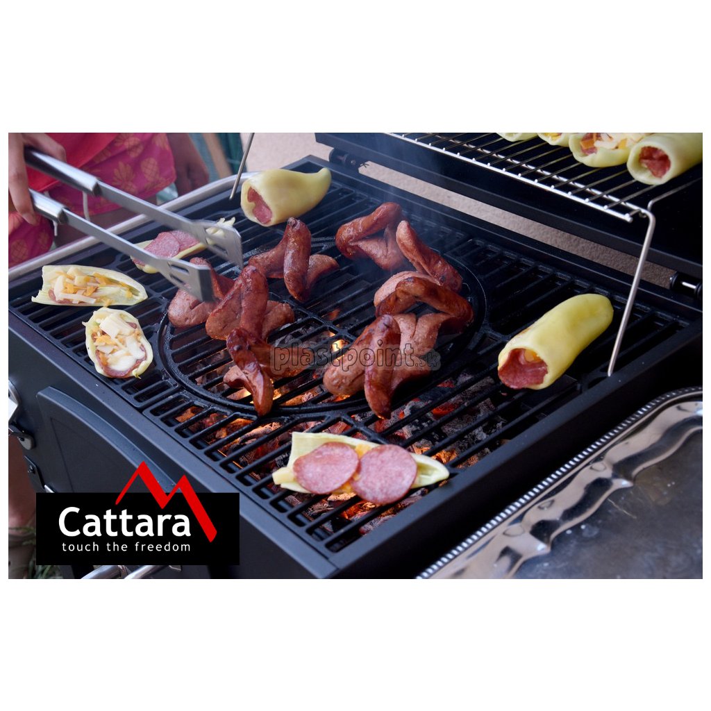 Pre samotnú tepelnú prípravu Vašich pochutín je gril vybavený trojdielnym liatinovým roštom s okrúhlym stredom, kde je možné po vybratí umiestniť napr. grilovacie panvice a podobné. Ďalej je vybavený odkladacím roštom na udržanie teploty už hotových pokrmov. Vyklápacie veko je vybavené teplomerom pre stálu kontrolu teplôt vo vnútri grilu.