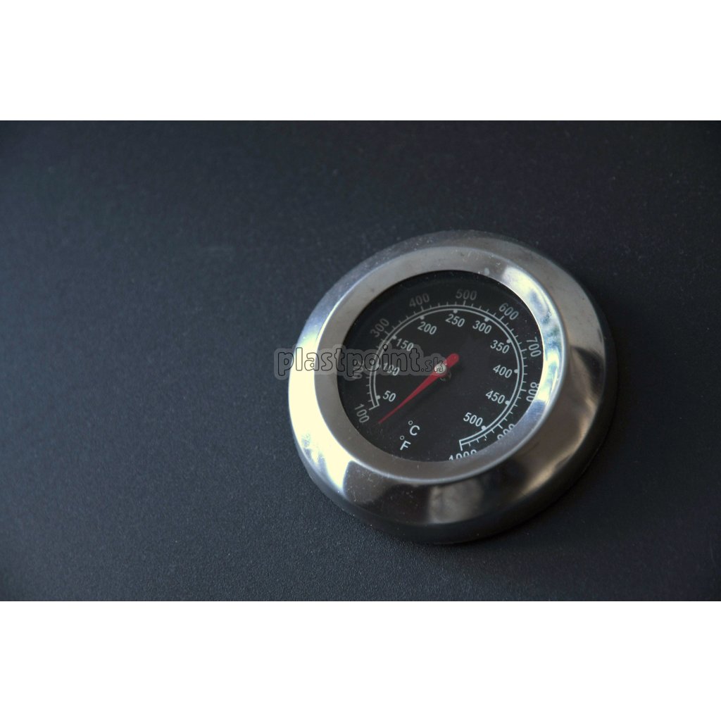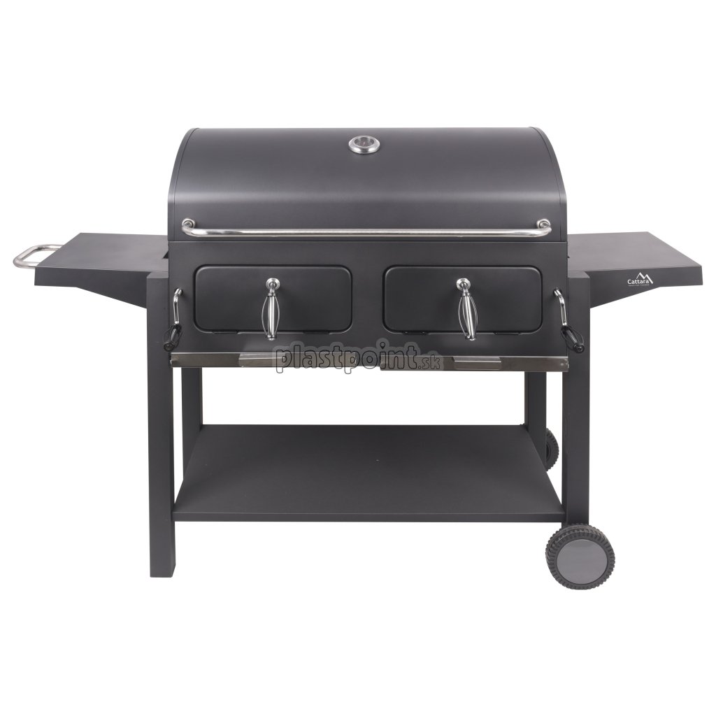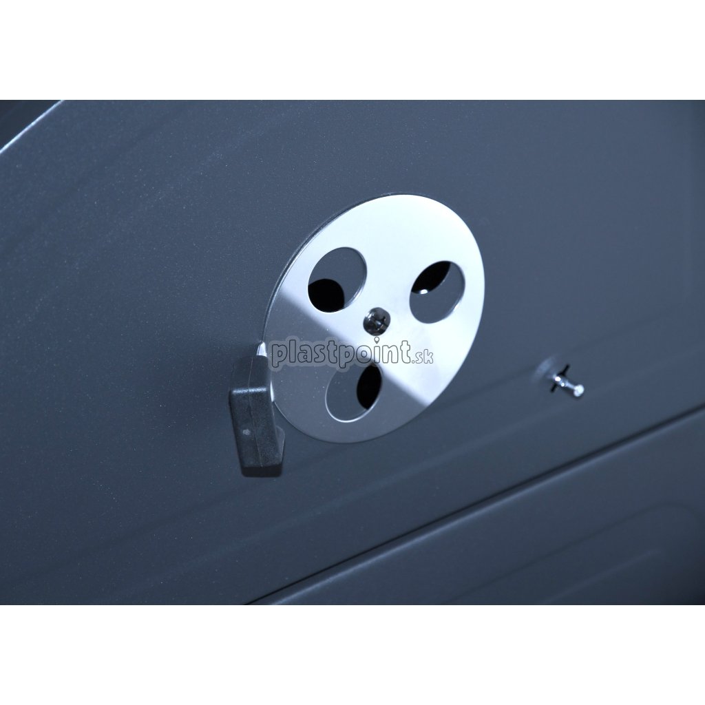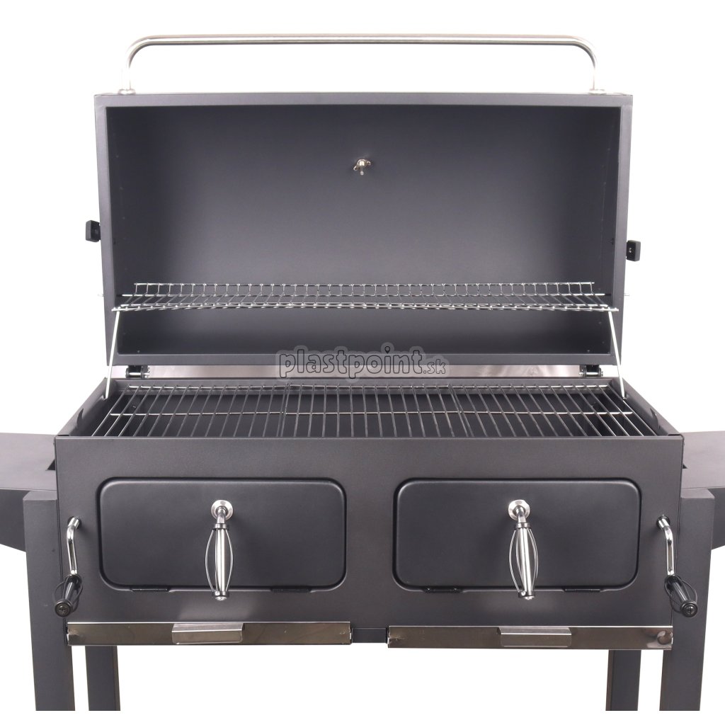 Ovládacie kovové prvky a rukoväte majú dostatočné rozmery pre pohodlný úchop a zaisťujú jednoduchú manipuláciu. Obojstranná oceľová regulácia ventilácie perfektne lícuje s konštrukciou. Vyklápacie veko je vo vrchnej časti doplnené teplomerom pre stálu kontrolu teplôt vo vnútri grilu.