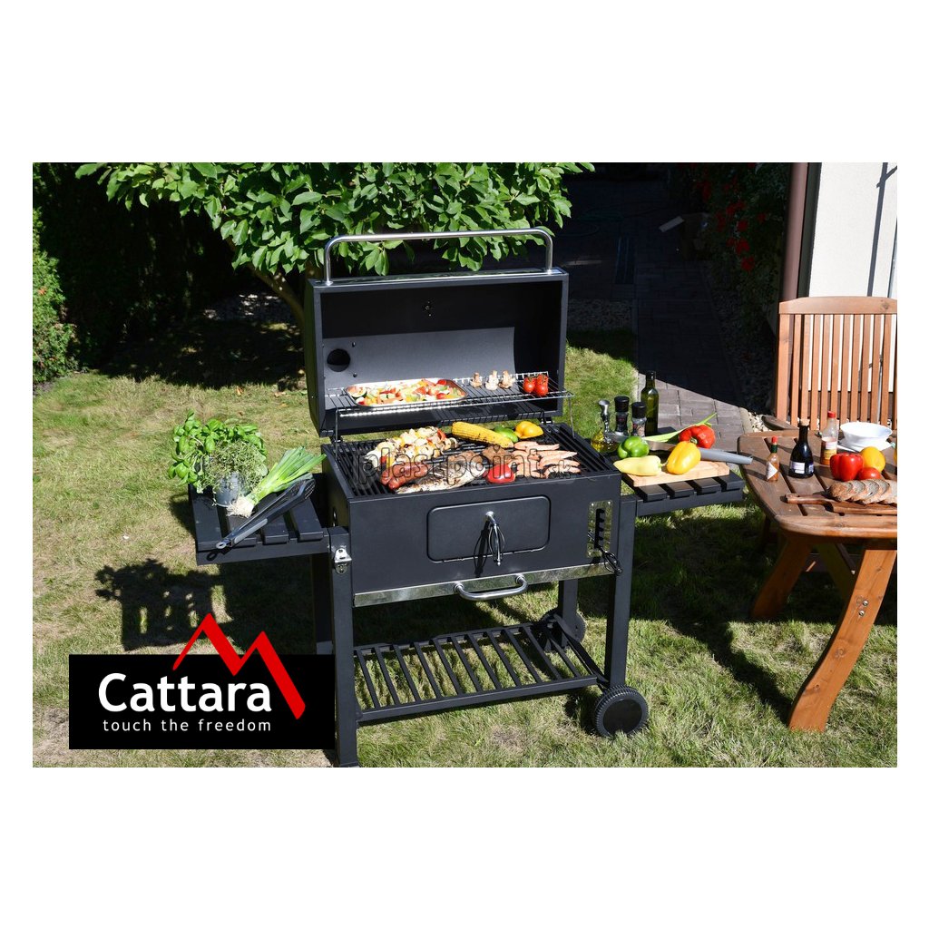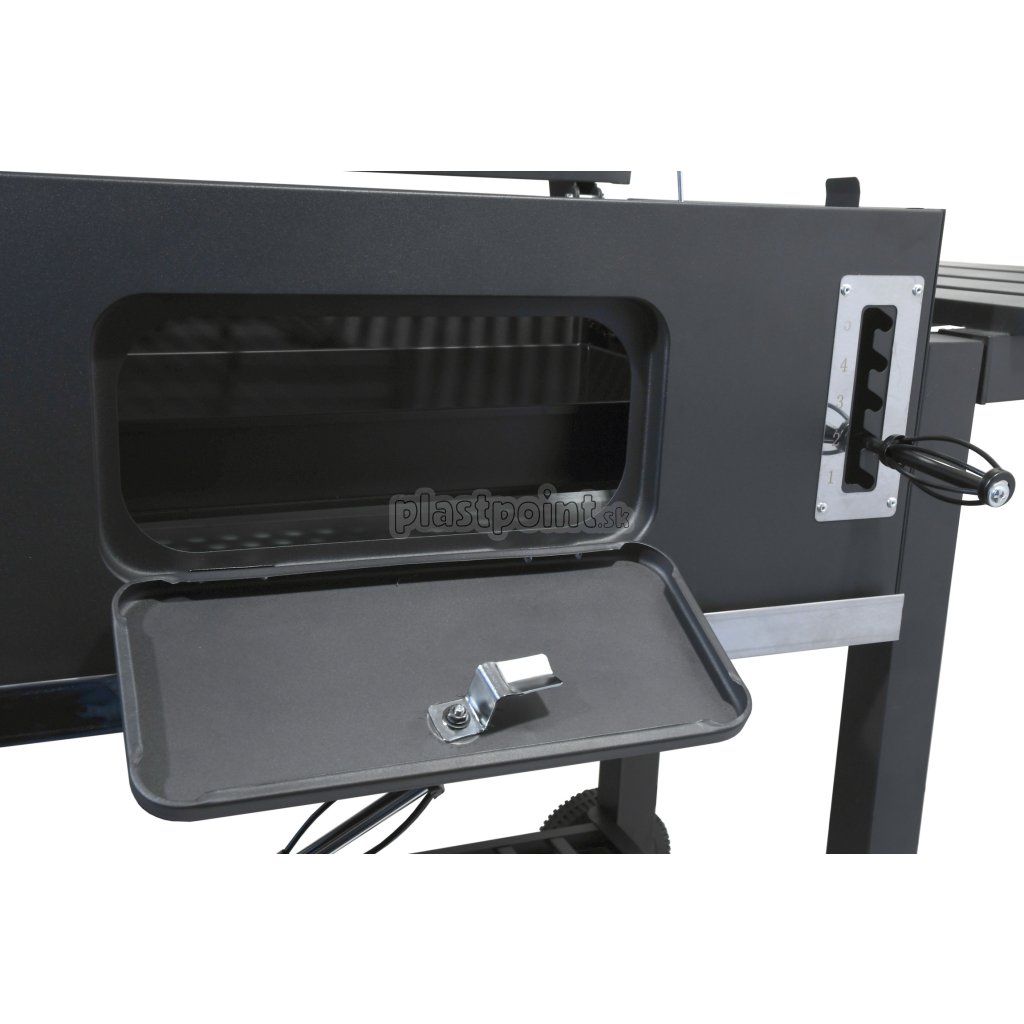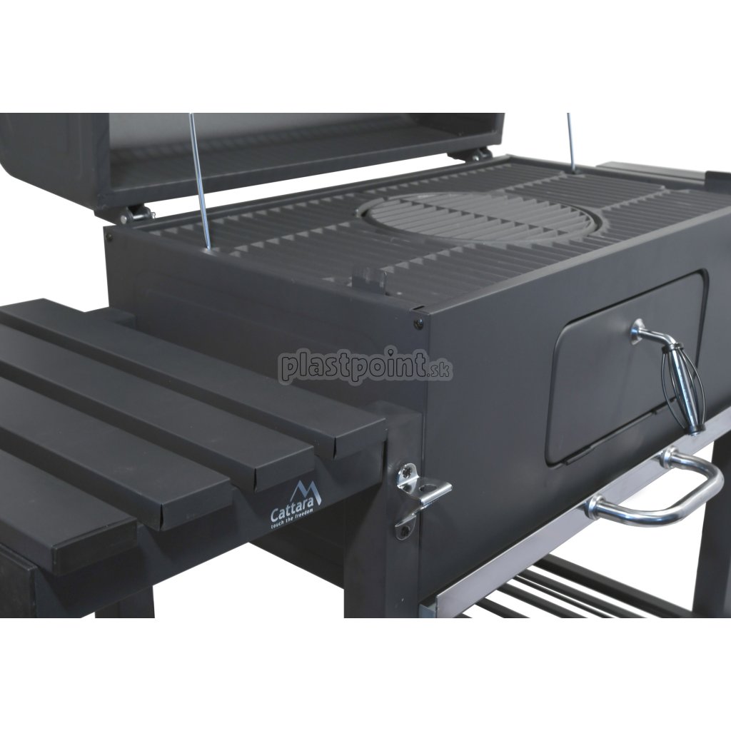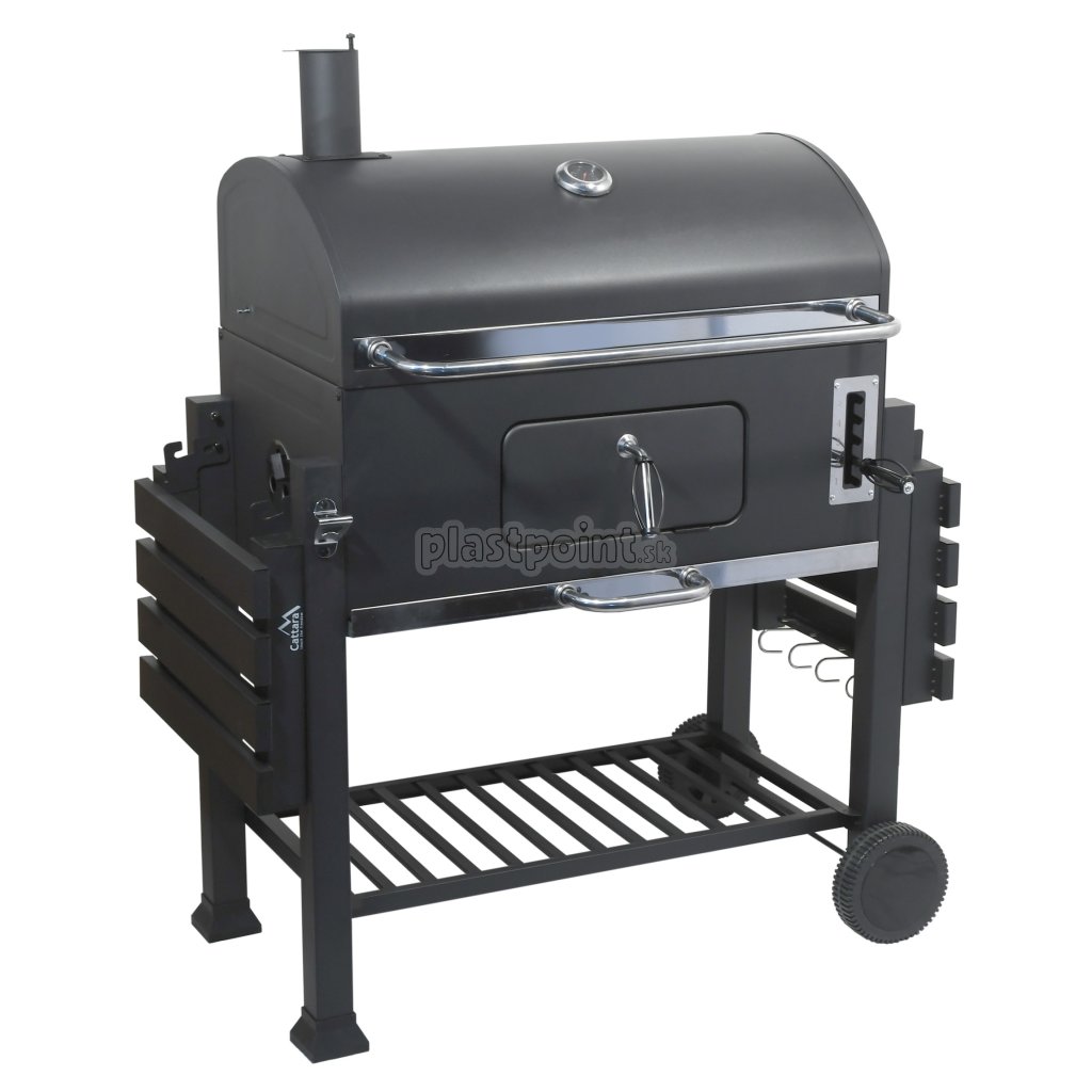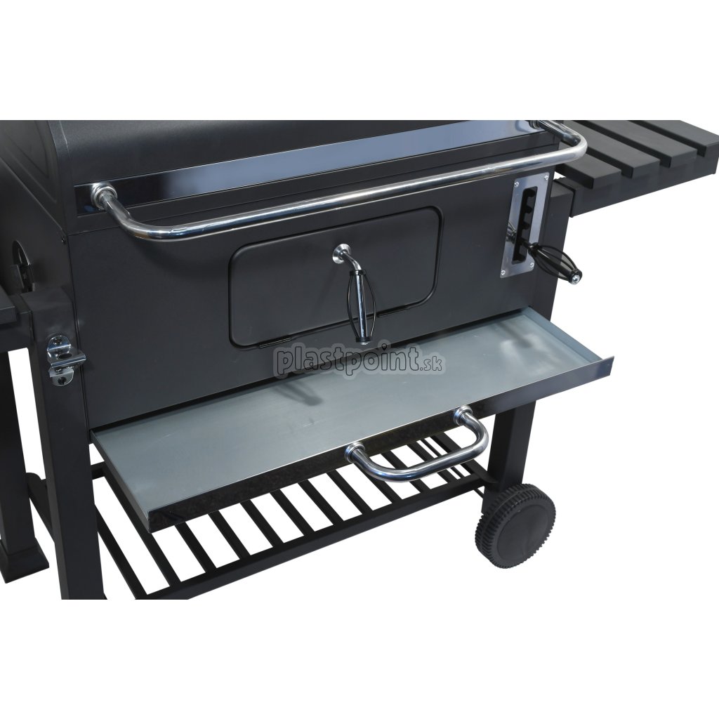 Ovládacie kovové prvky a rukoväte majú dostatočné rozmery pre pohodlný úchop a zaisťujú ľahkú manipuláciu. Obojstranná oceľová regulácia ventilácie perfektne lícuje s konštrukciou. Vyklápacie veko je vo vrchnej časti doplnené komínom a navyše je opatrené teplomerom pre stálu kontrolu teplôt vo vnútri grilu.