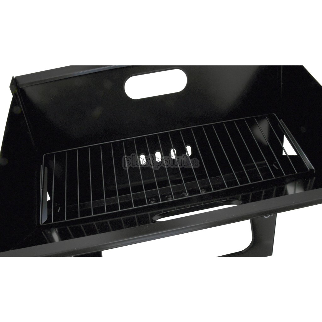 Konštrukcia je vyrobená z kvalitnej ocele s čiernym smaltovaným povrchom. Stabilitu zaisťuje krížová konštrukcia tela grilu. Rozmery grilu 43 x 28 x 37 cm.