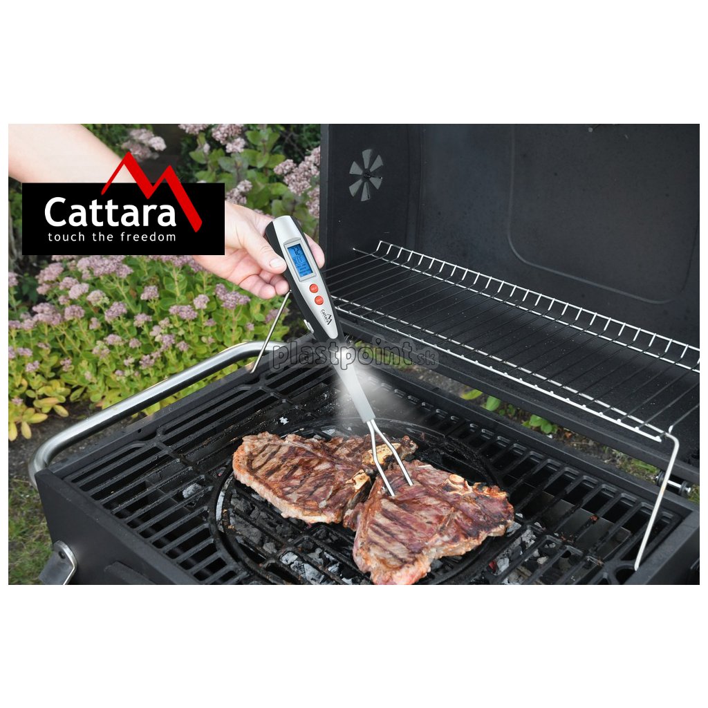 Praktický pomocník pre grilovanie opatrený digitálnym teplomerom a šikovným nastaviteľným prostredím.