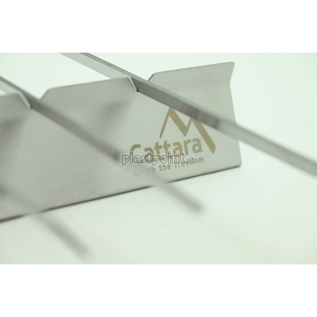 Podstavec je dvojdielny s dĺžkou 35 cm a hrúbkou plechu 1,2 mm. Oba diely je možné umiestniť podľa veľkosti špízov, čo zaisťuje maximálnu flexibilitu pri grilovaní. Podstavce umožňujú umiestniť špízy do drážok vo výške 3 cm, takže sa rovnomerne prepečú zo všetkých strán. Drážky navyše uľahčia otáčanie.