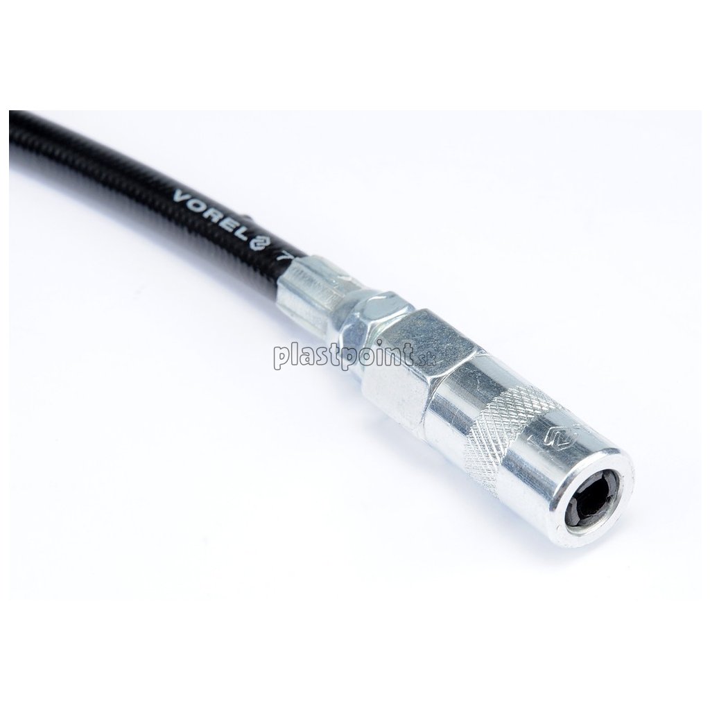 Náhradná tlaková hadica pre mazacie lisy s kvalitnou 4 čeľusťovou hlavou pre pripojenie k mazacím niplom.