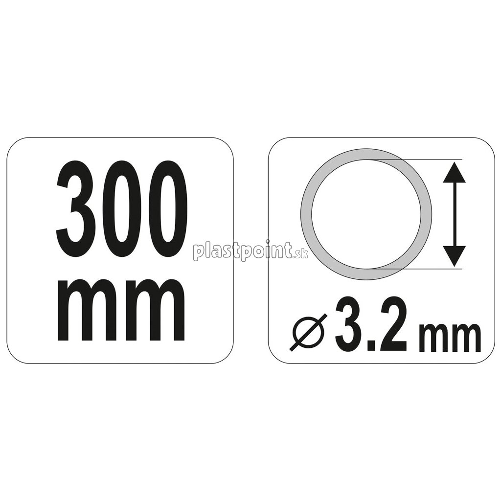 Dĺžka hadice 300 mm, priemeru 3,2 mm, zhotovená z nylonu a živice.