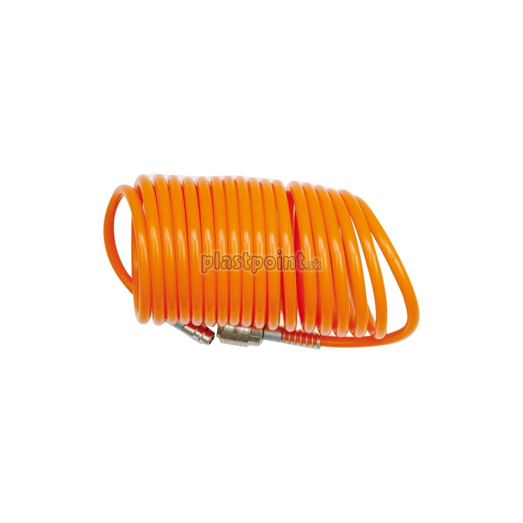 Flexibilná špirálová hadica na stlačený vzduch, ktorá má na oboch koncoch rýchlospojky pre jednoduché a rýchle pripojenie a odpojenie kompresora a pneumatického náradia. Po použití sa hadica automaticky zvinie na minimálnu veľkosť. Tým sa vyhnete rozvinovaniu a opätovnému navinovaniu hadice.