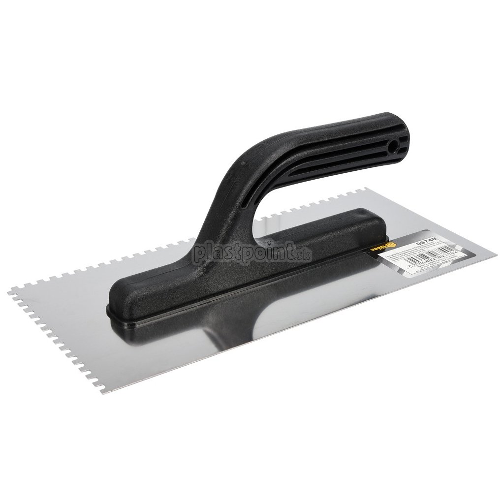 Nerezová omietacia stierka 125x270 mm so zubami 4x4 mm. Plastová rukoväťDodatočné parametre