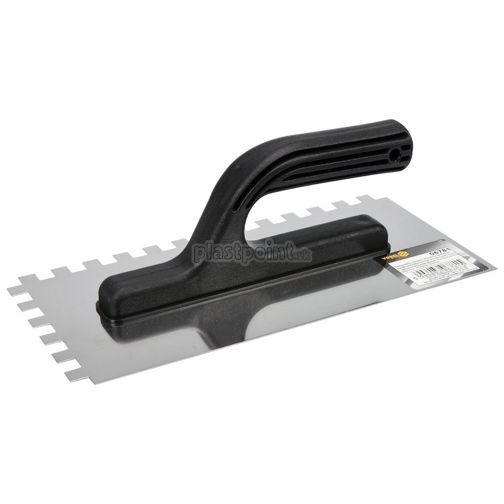 Nerezová omietacia stierka 125x270 mm so zubami 10x10 mm. Plastová rukoväťDodatočné parametre