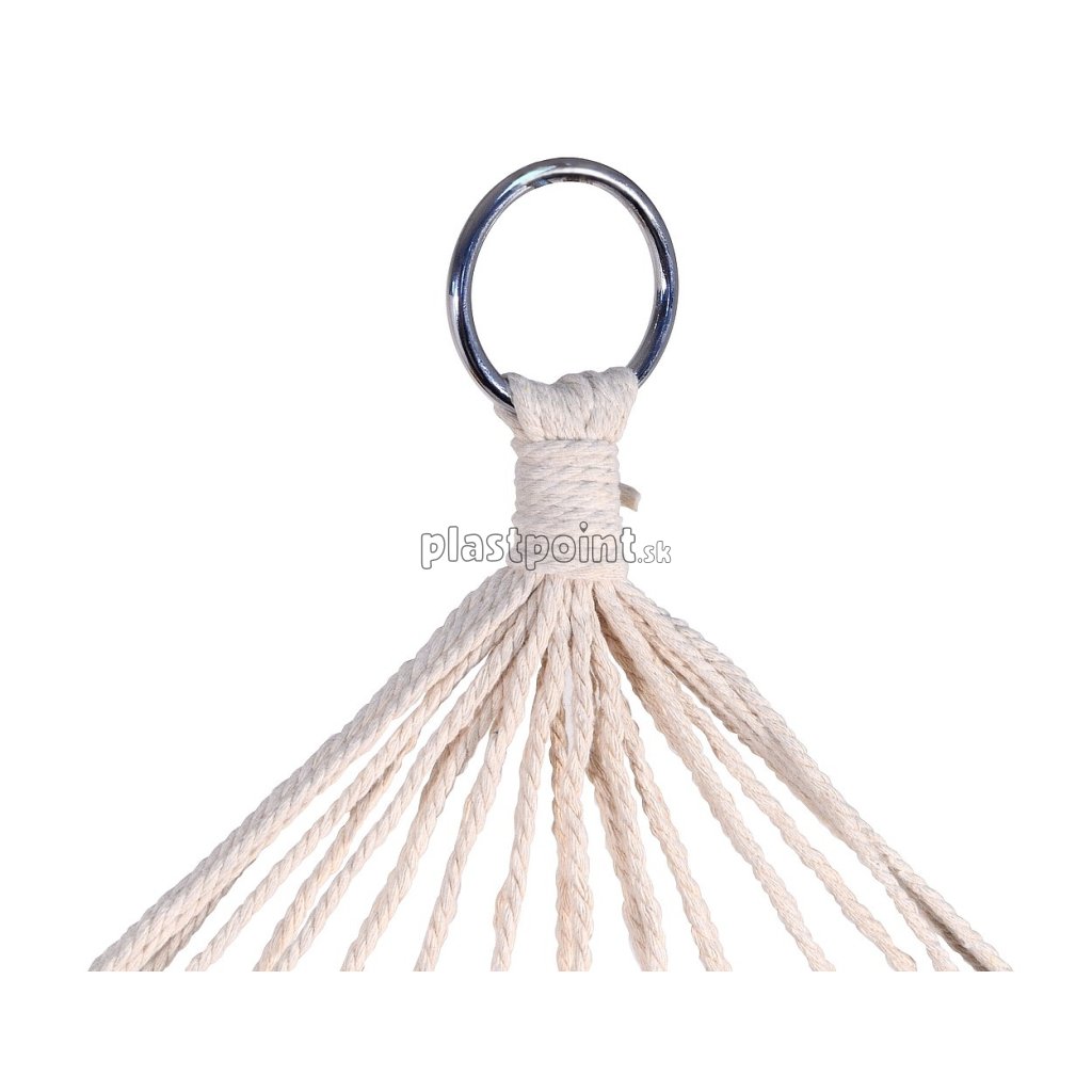 Outdoorová hojdacia sieť, upevniteľná pomocou dvoch závesných krúžkov.