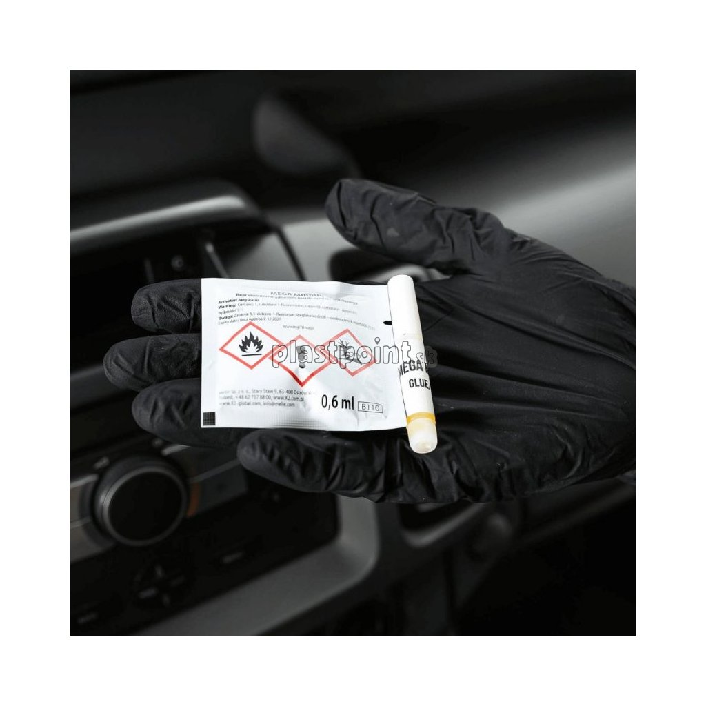 Spôsob použitia: Na vonkajšej strane okna označte umiestnenie starého. Lepený povrch mechanicky očistite od starého lepidla napr. žiletkou. Stiahnite papierové puzdro a ohite plastovú nádobu tak, aby sa zlomil vnútorný sklenený valec. Podkladová tekutina vytečie na plstenú koncovku. Naneste tenkú vrstvu podkladu na jeden z lepených povrchov (napr. kovový držiak zrkadla, ktorý sa bude prikladať ku sklu). Počkejte 1-2 minúty na preschnutie. Opatrne odtrhnite koniec plastovej tubičky s lepidlom. Naneste jednu kvapku, alebo tenkú vrstvu lepidla na najprv očistený povrch. Lepidlo sa rovnomerne rozprestrie po priložení kovového držiaka ku sklu. Pritlačte kovový držiak ku sklu držte približne 30 sekúnd. Dávajte pozor, aby ste počas lepenia nepohli s lepenými časťami. S namontovaním spätného zrkadla počkajte ešte asi 10 minút.