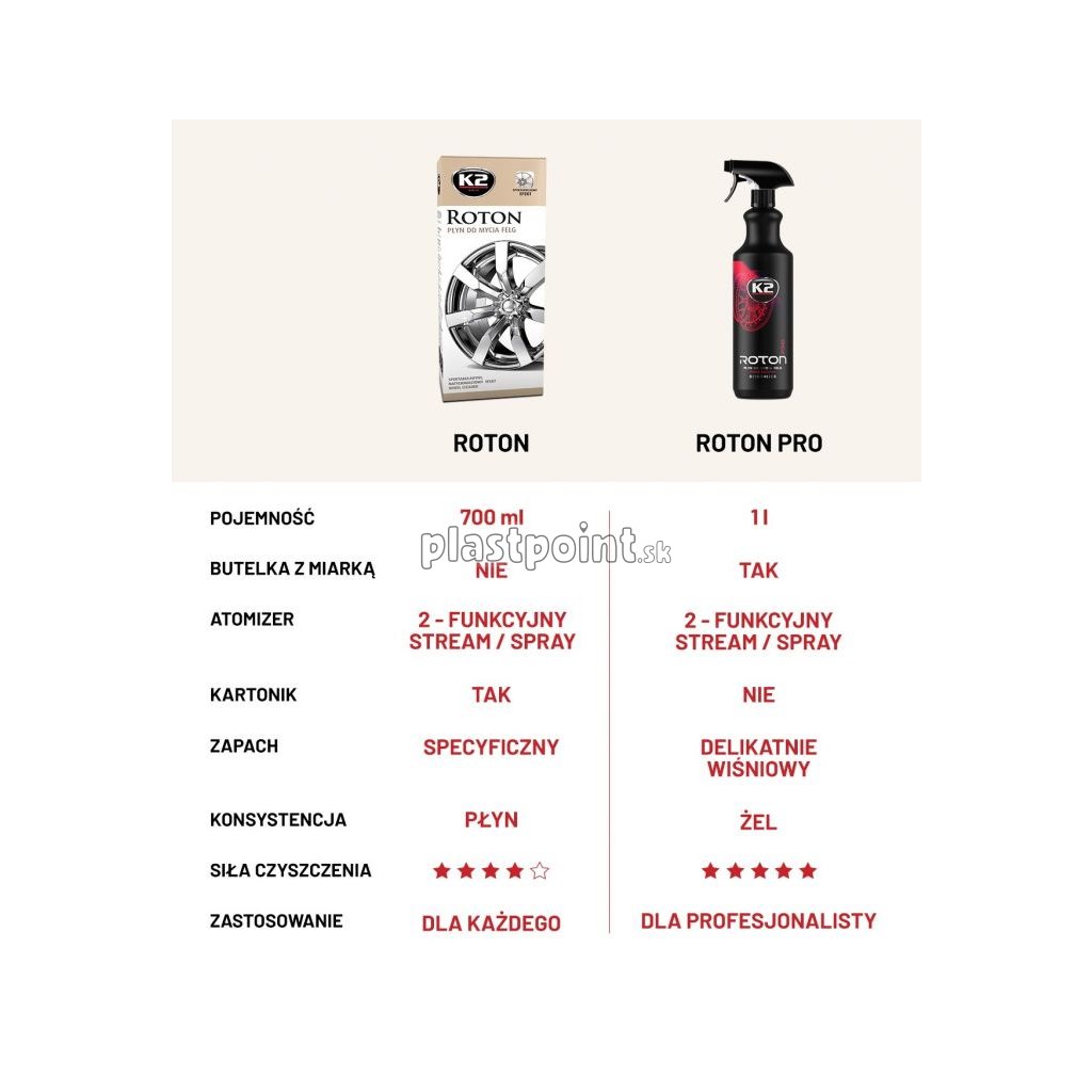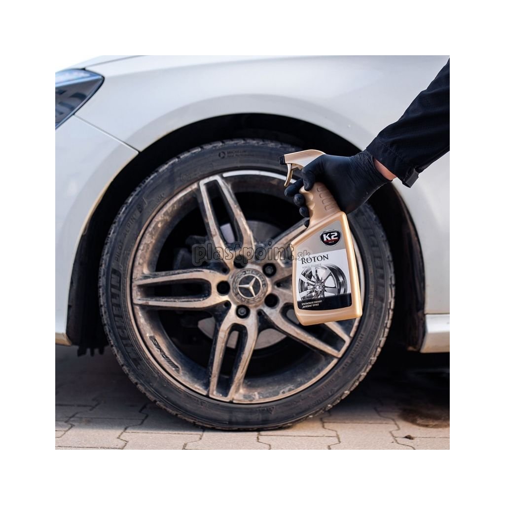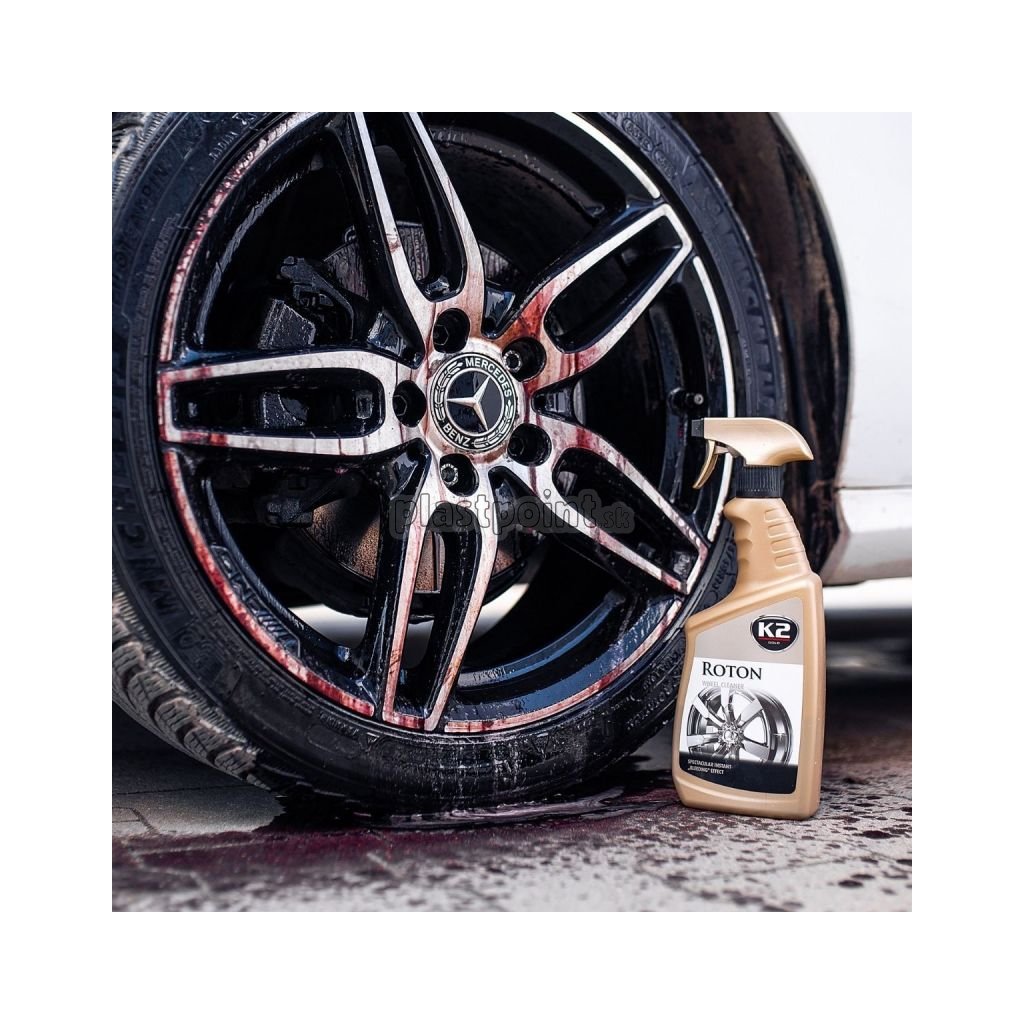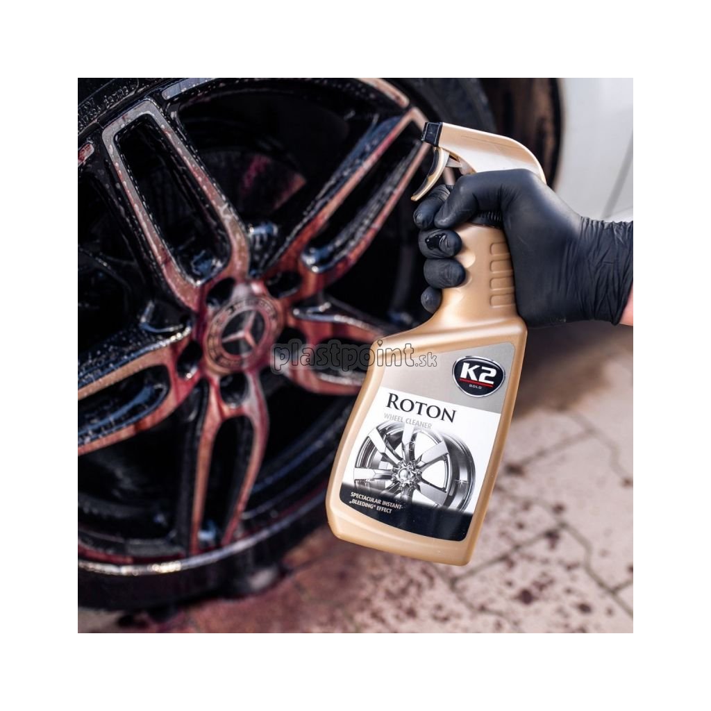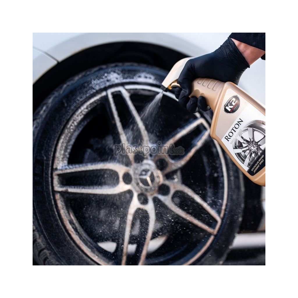 Kvapalina na umývanie diskov. K2 ROTON neobyčajne odstraňuje a preniká do neústupnej nečistoty, vrátane kalov z brzdových doštičiek a z prašných ciest. nečistoty bez nebezpečenstva poškriabania povrchu. Určený pre všetky druhy ráfikov a pokrievok.