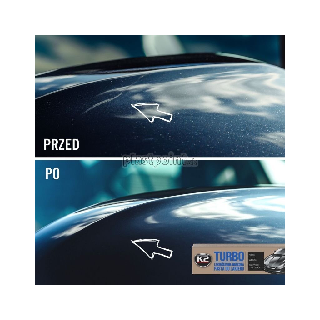 Pasta na karosérii automobilu testovaná miliónmi zákazníkov. Receptúra K2 TURBO so špeciálnymi nanočasticami odstraňuje aj tie najmenšie škrabance a dáva ešte väčší lesk laku.