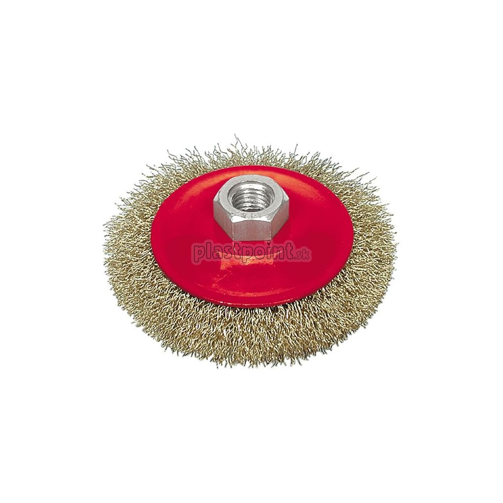 Kefka kotúčová pre uhlové brúsky, zhotovenie pomosadený oceľový drôt vlnitý.