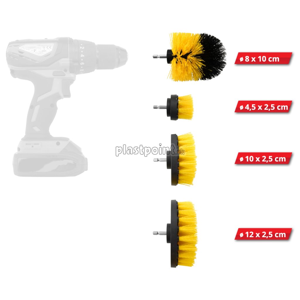 Sada 4ks čistiacich kief, husto osadených nylonovými štetinami strednej tuhosti.