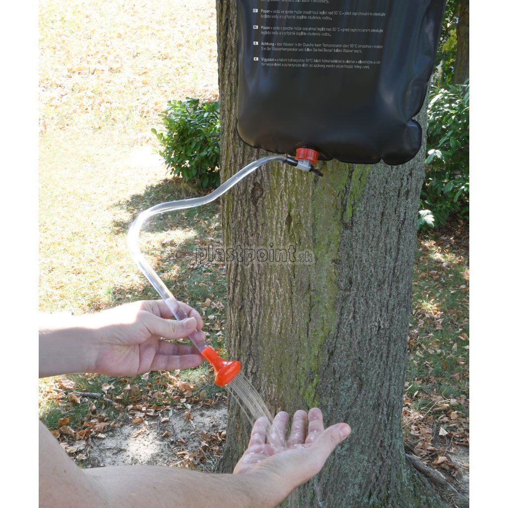 Kempingová sprcha s objemom 20l vhodná na zavesenie na strom, v kempe a na iných miestach.