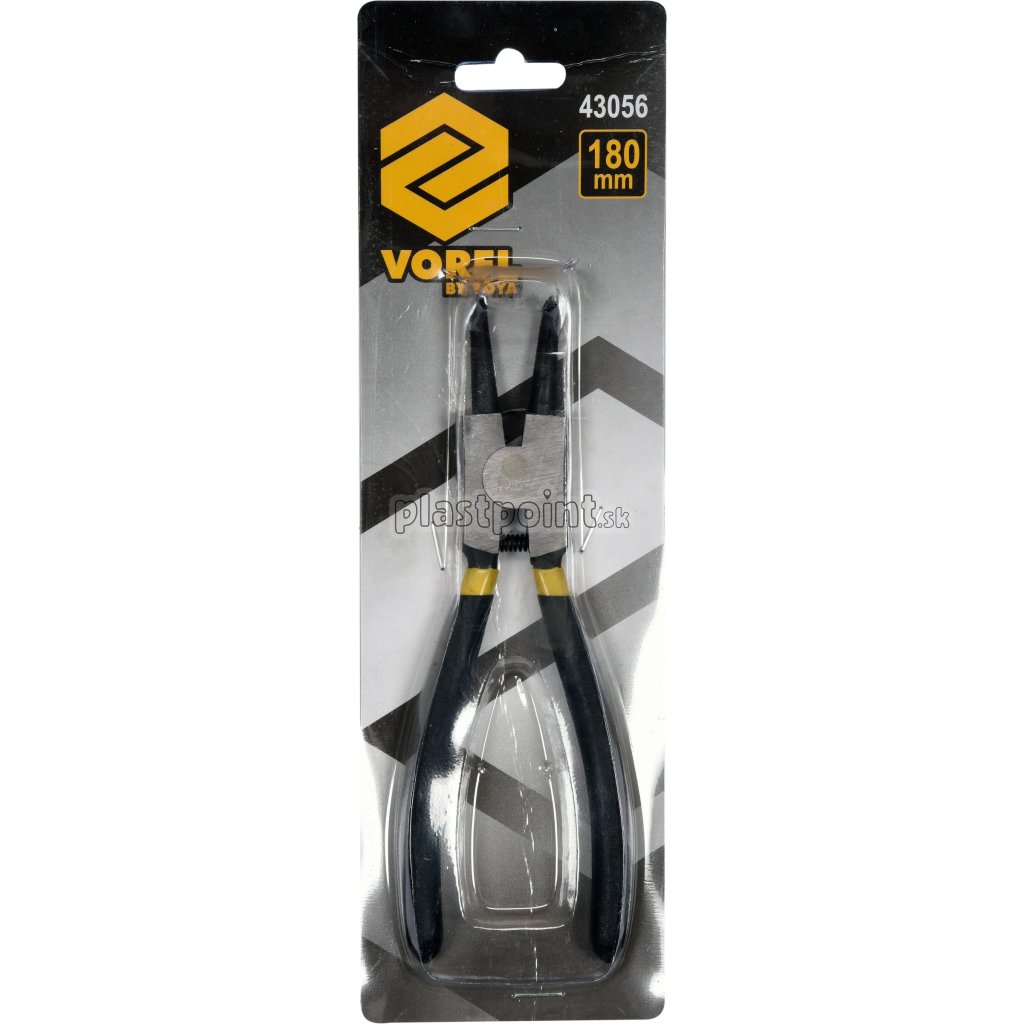 Ségr kliešte VOREL 43056 vonkajšie zahnuté v uhle 90° dĺžka 180 mm na poistné krúžky zvonka na hriadeli priemer 19 - 60 mm.