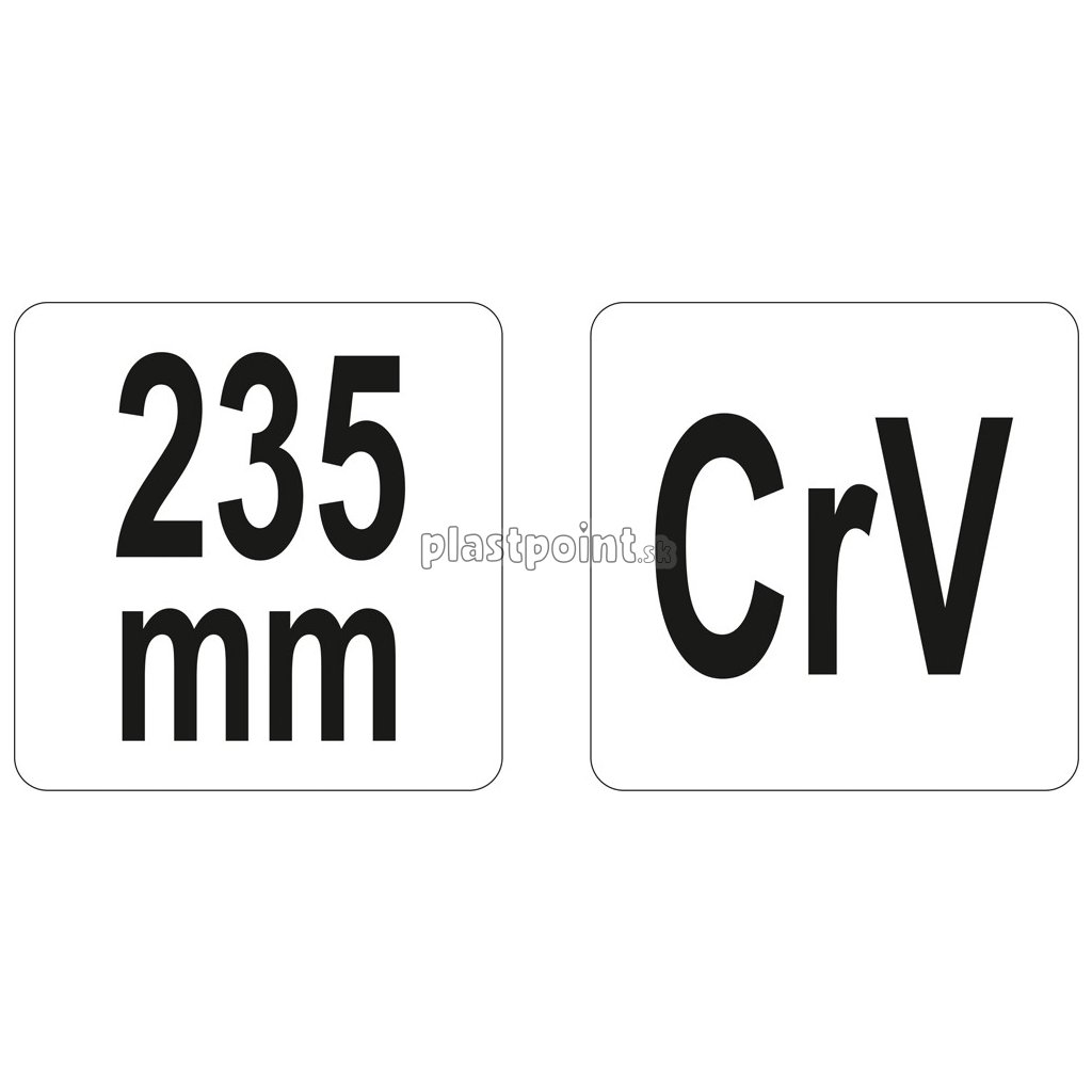 Kliešte dĺžky 235 mm a hrúbky 5 mm, sú zhotovené z CrV ocele.