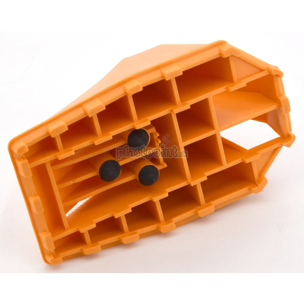 Klin pod koleso vozidla opatrený brzdou, ktorá sa pri zaťažení zaprie o podklad a tým zaistí jeho nehybnosť.