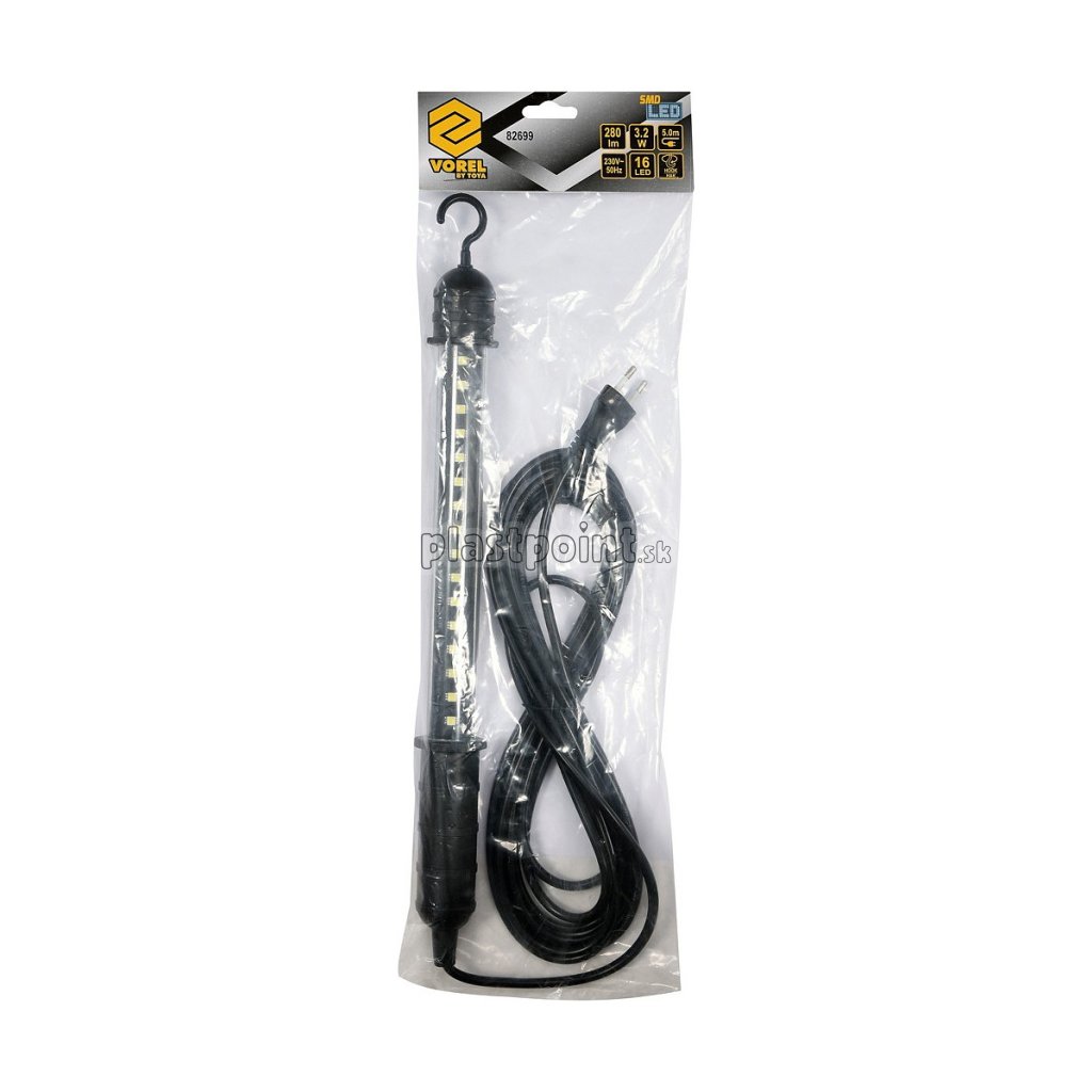 Dĺžka kábla 5 m je dostatočne dlhá pre potrebnú manipuláciu so svietidlom. V hornej časti je lampa vybavená háčikom pre ľahké zavesenie.