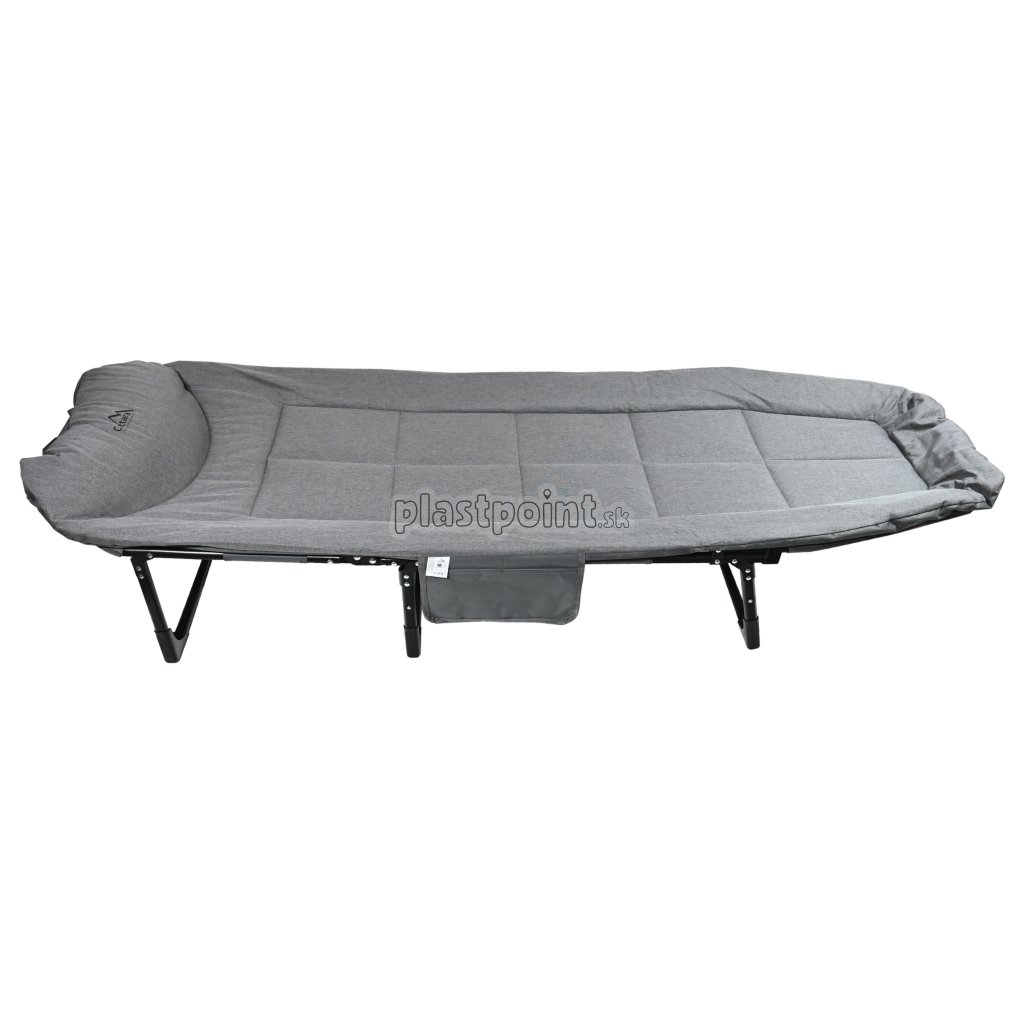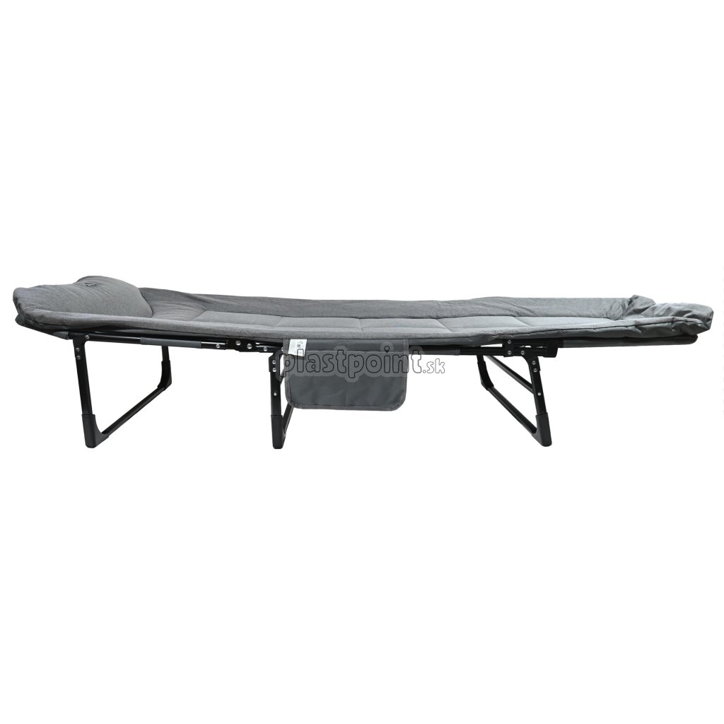 Lehátko je v časti chrbtovej opierky vybavené sklápacím mechanizmom, ktorý umožní napolohovanie opierky pre čo najvyšší komfort pre ničím nerušený spánok, alebo aj len pre odpočinok. zaťaženie až 120 kg a navyše umožňuje ľahké a rýchle zloženie. Poťah je vyrobený z polyesteru s vnútornou výplňou a vrátane vankúša zaistí vysokú mieru pohodlia. Vybalené lehátko má rozmery 200 x 65 cm vo výške 30 cm. Na boku je lehátko doplnené praktickým vreckom na odloženie drobností. Lehátko zaistí kvalitný odpočinok.